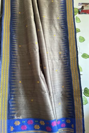 This beautiful handwoven handspun fine Gopalpur tussar #dolabedi saree motifs are a portrayal of “Dola” (canopy), and “Bedi” (ground)blended with other flora and fauna.