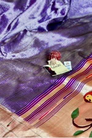 Paithani sarees are known for their intricate handwoven silk and Tissue Zari work and are a traditional specialty of the Paithan region in Maharashtra. Today Yeola town in Nashik, Maharashtra is the largest manufacturer of Paithani. The key element of a Paithani is its completely hand-woven border and pallu. Woven between the weft and warp threads, it creates almost mirror image of face design at the reverse side of the Saree. A key tell-tale sign of an authentic Paithani is that it looks exactly the same on both sides.