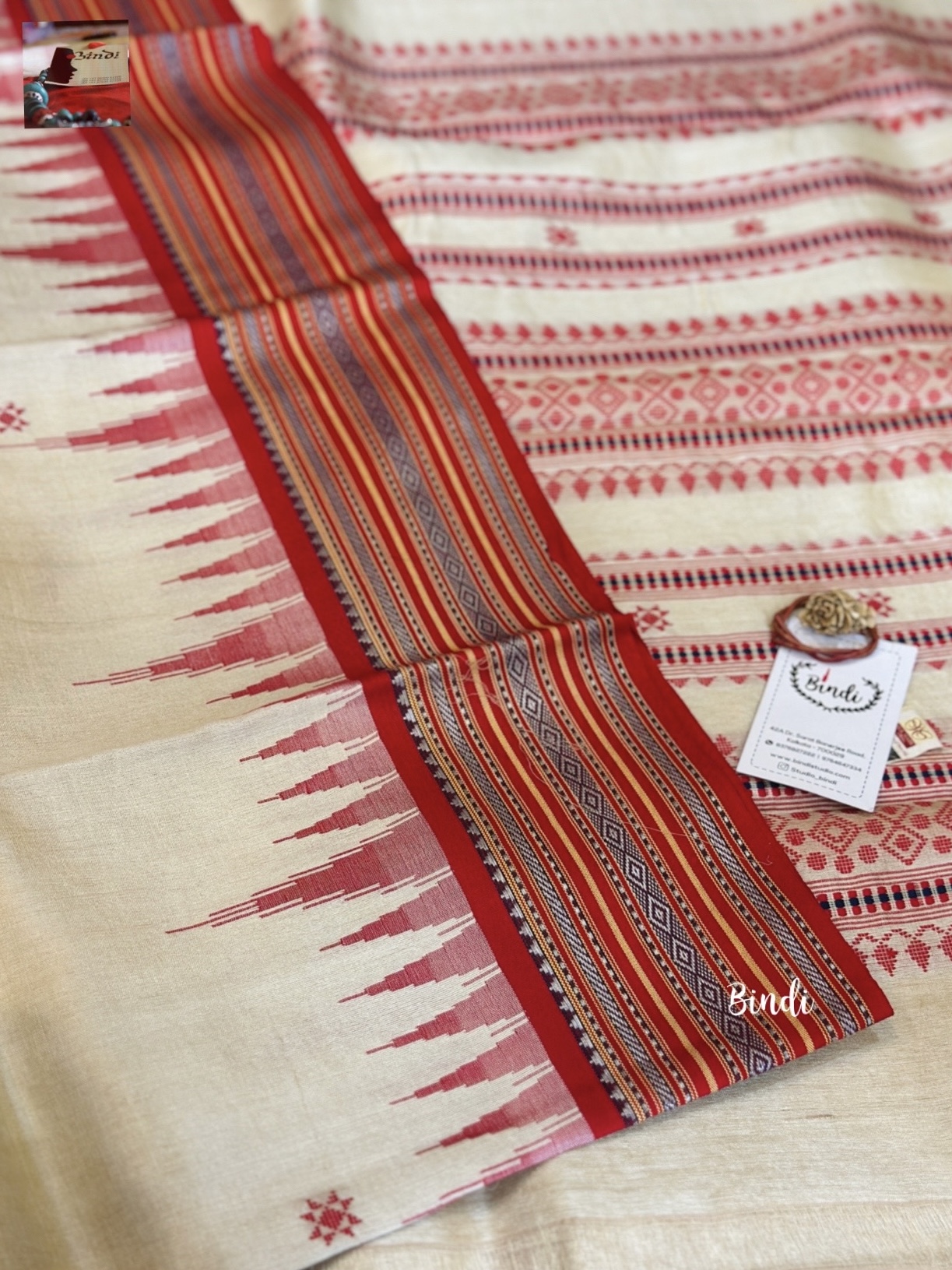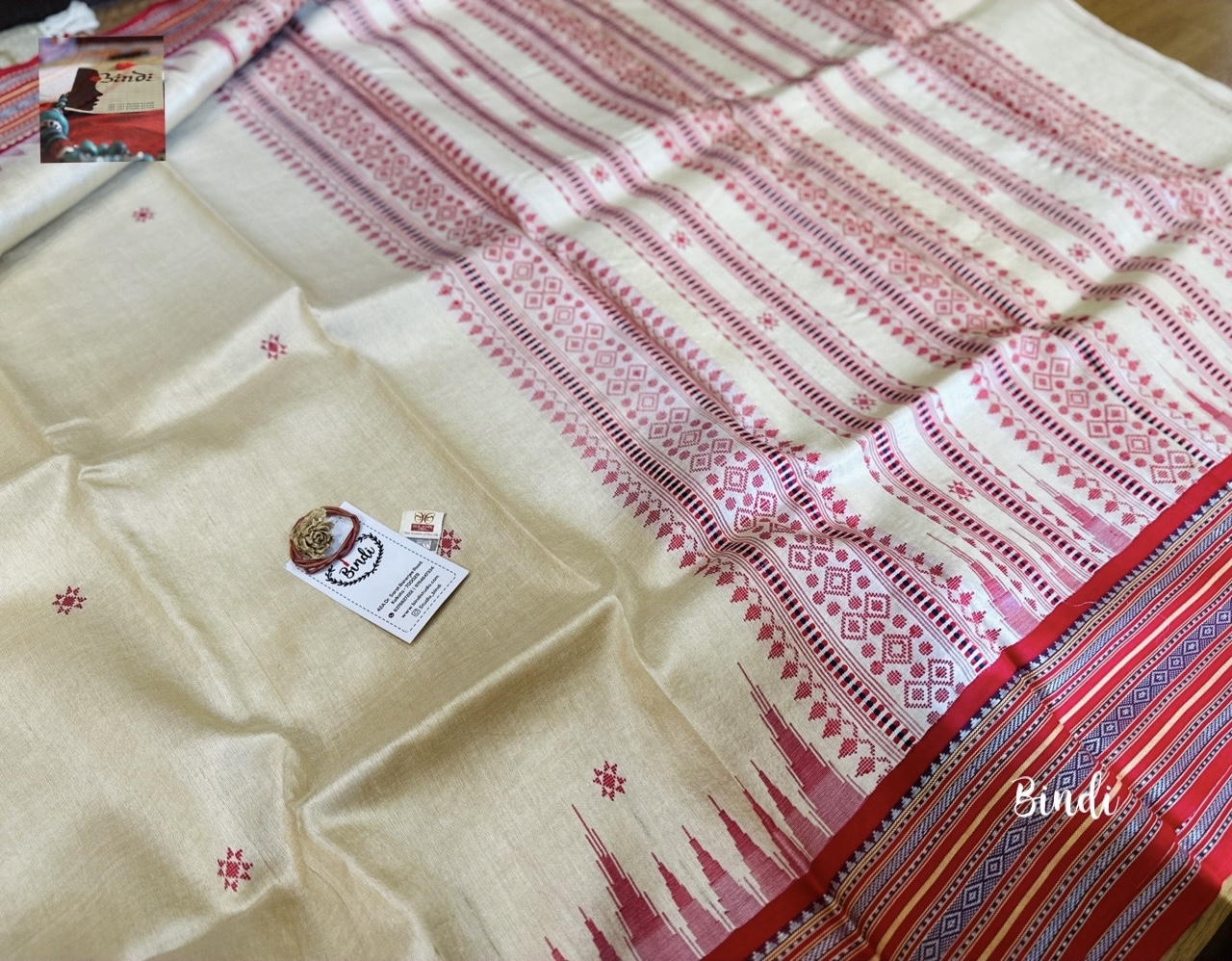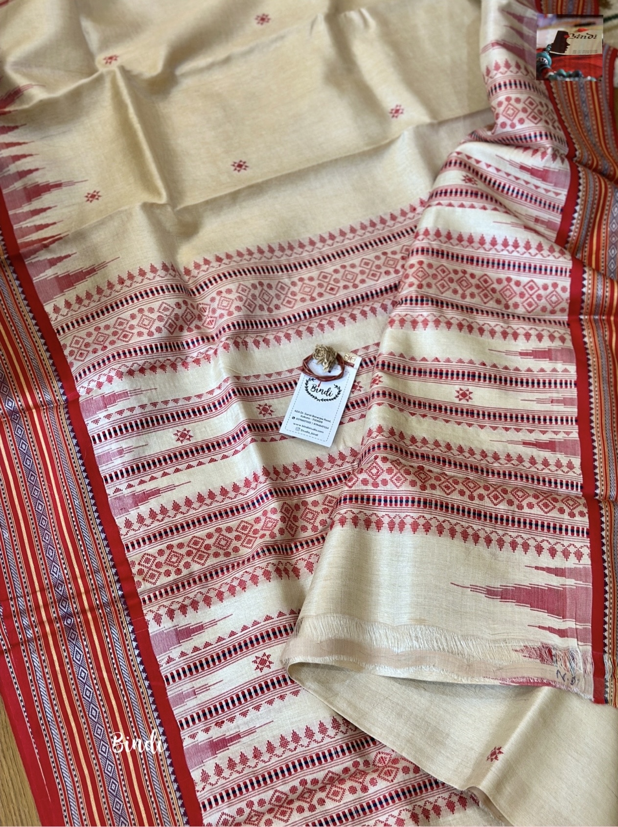 Handwoven Handspun pure Karavati Kinar Vidarbha Tussar saree with Jaala palla