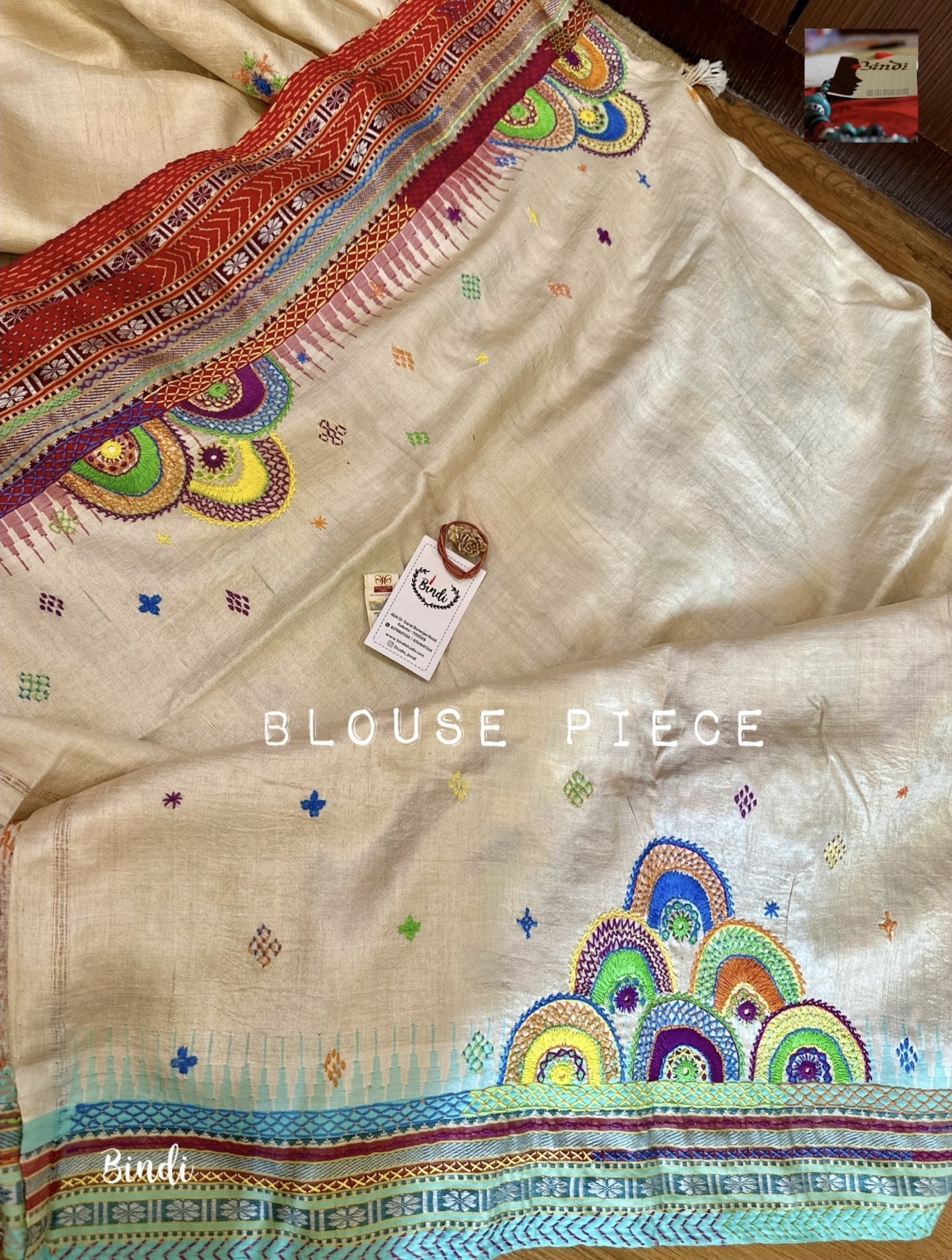 A handcrafted Lambani saree on pure Vidarbha tussar, paired with an exquisitely embroidered blouse piece—an heirloom that celebrates culture, craftsmanship, and the spirit of the artisans behind it.