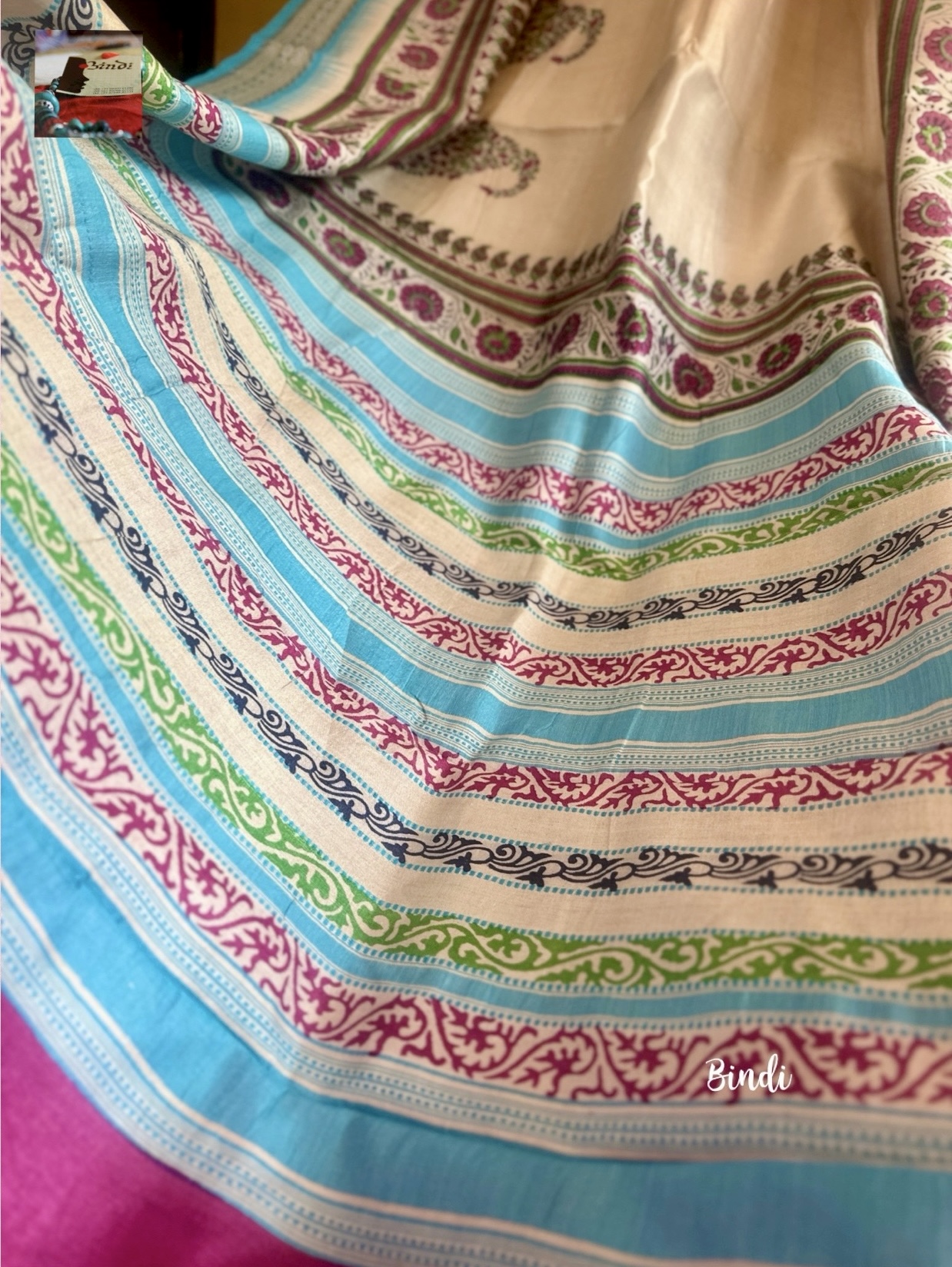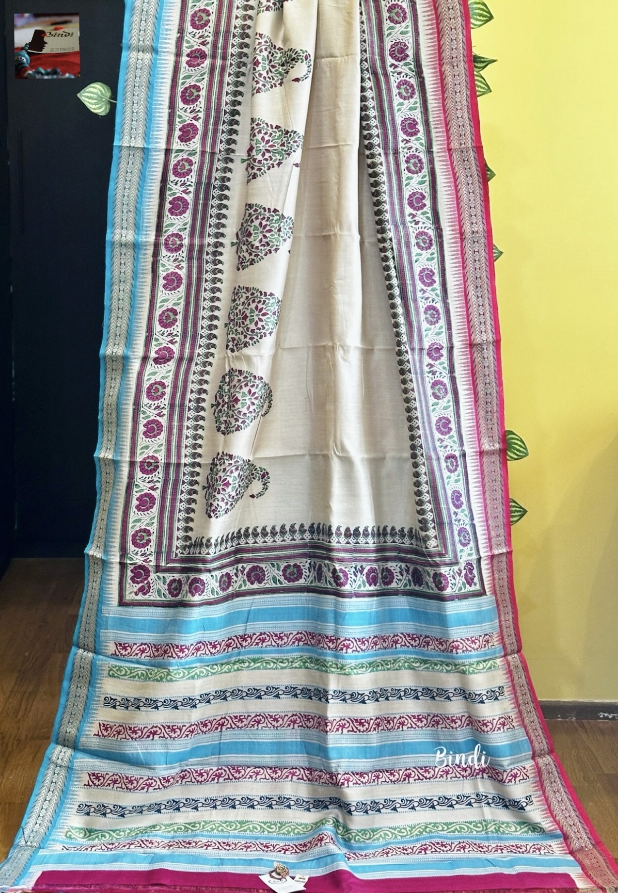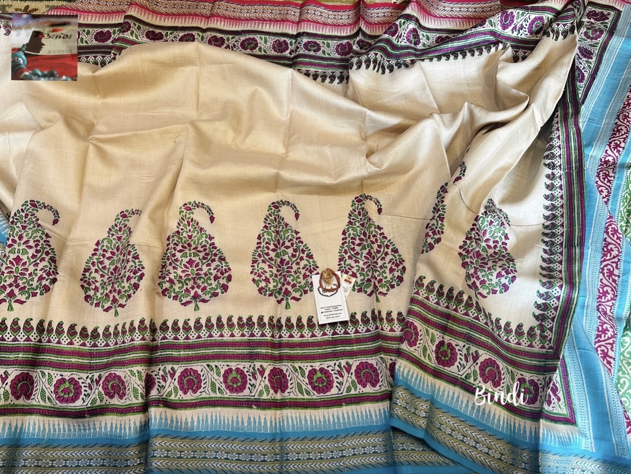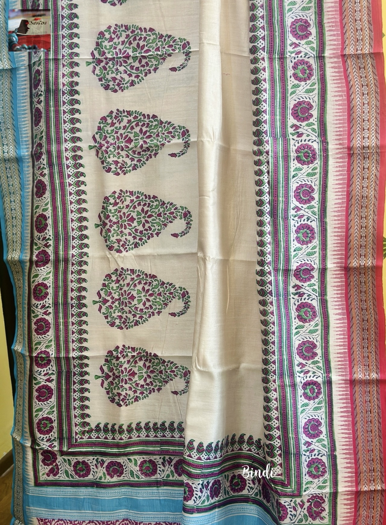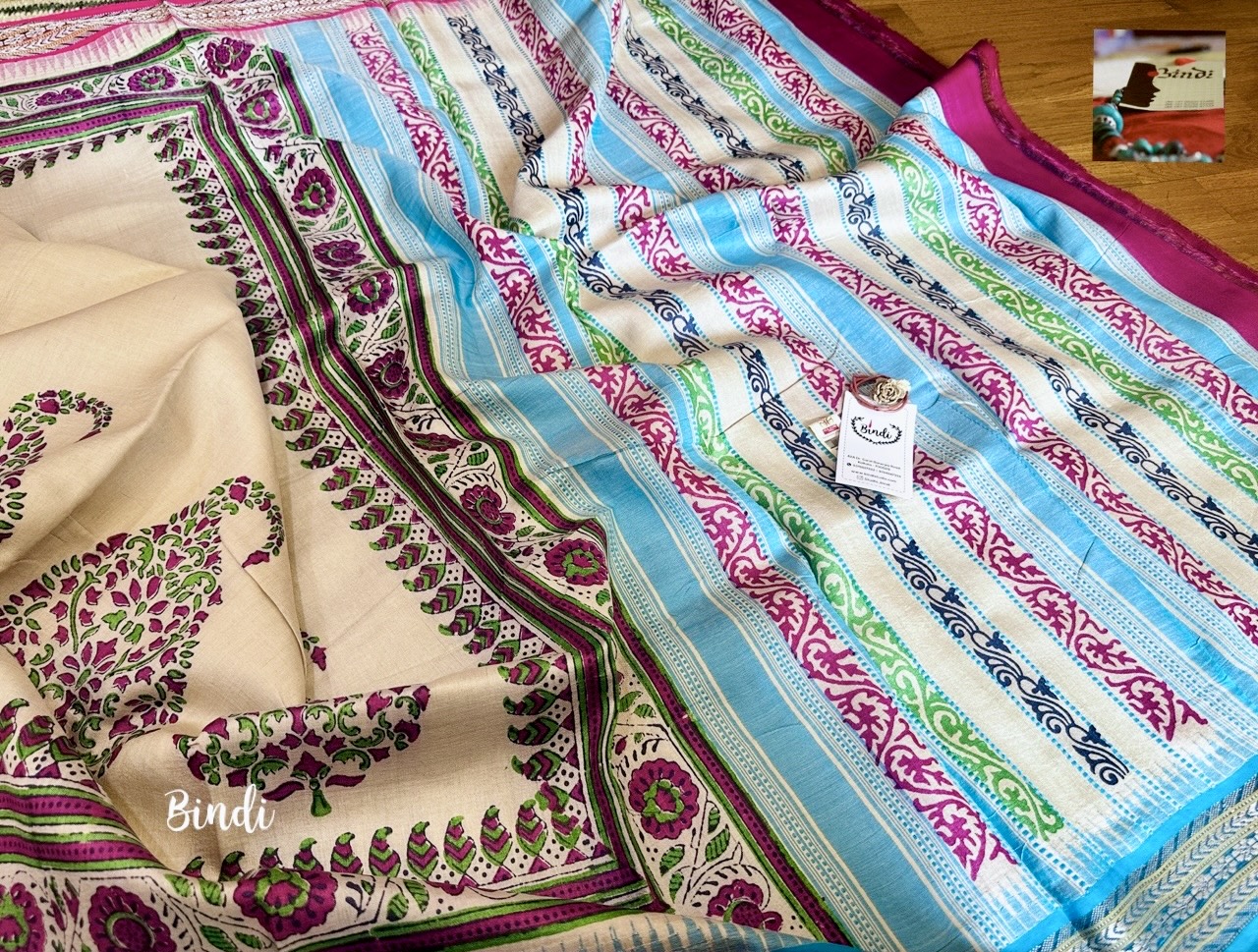 Hand Block Print on Karavati Kinar Vidarbha Tussar saree