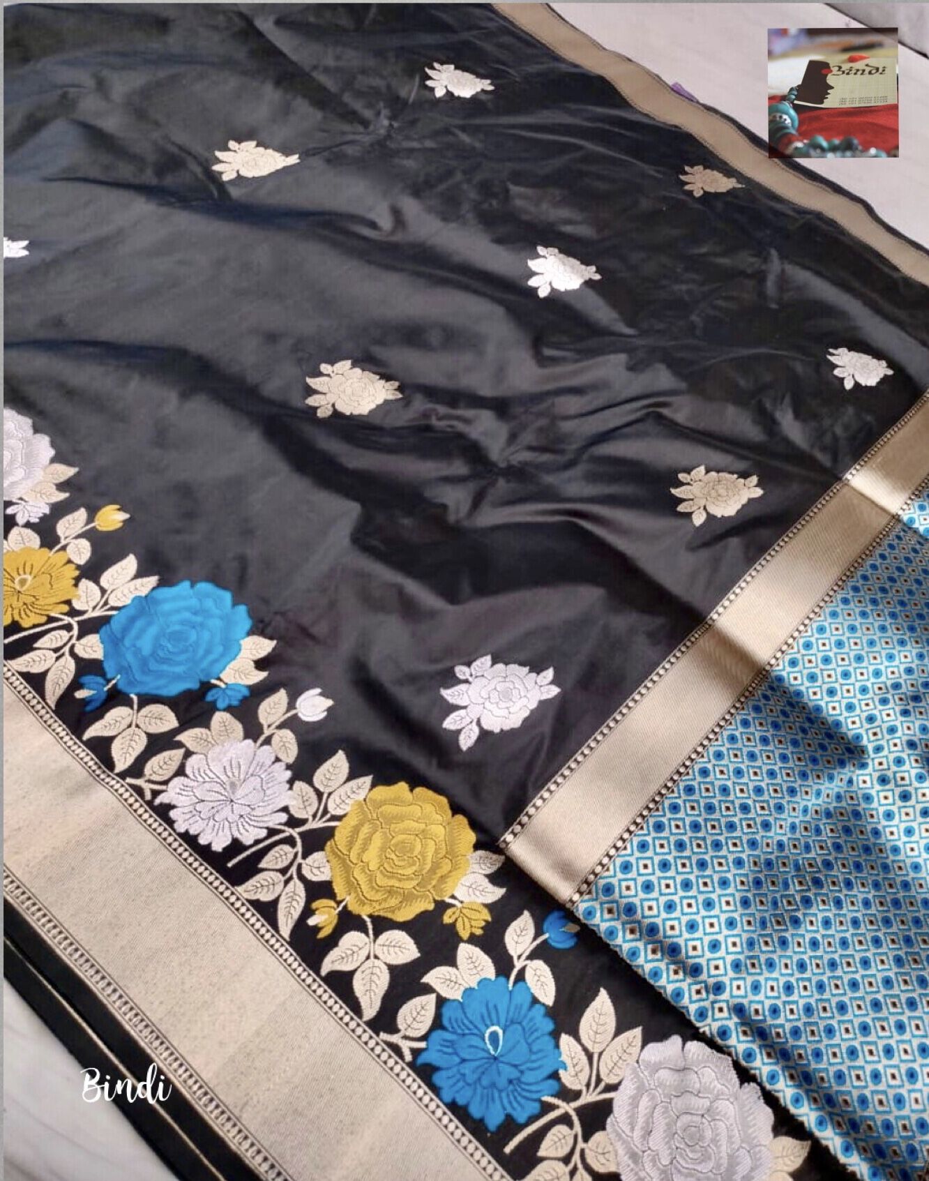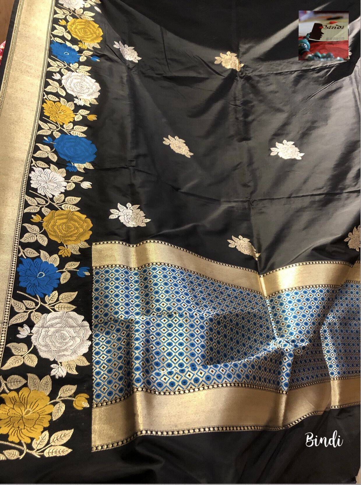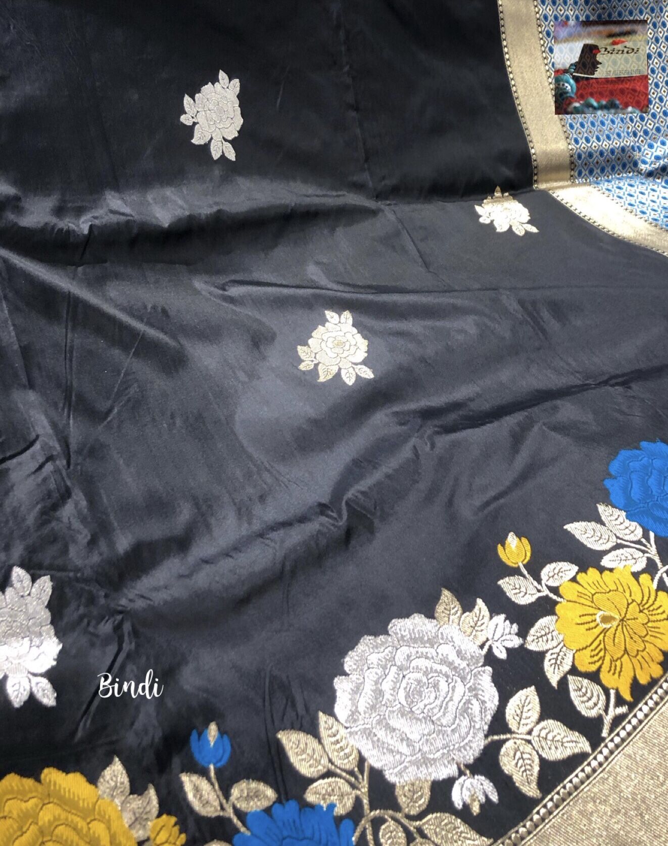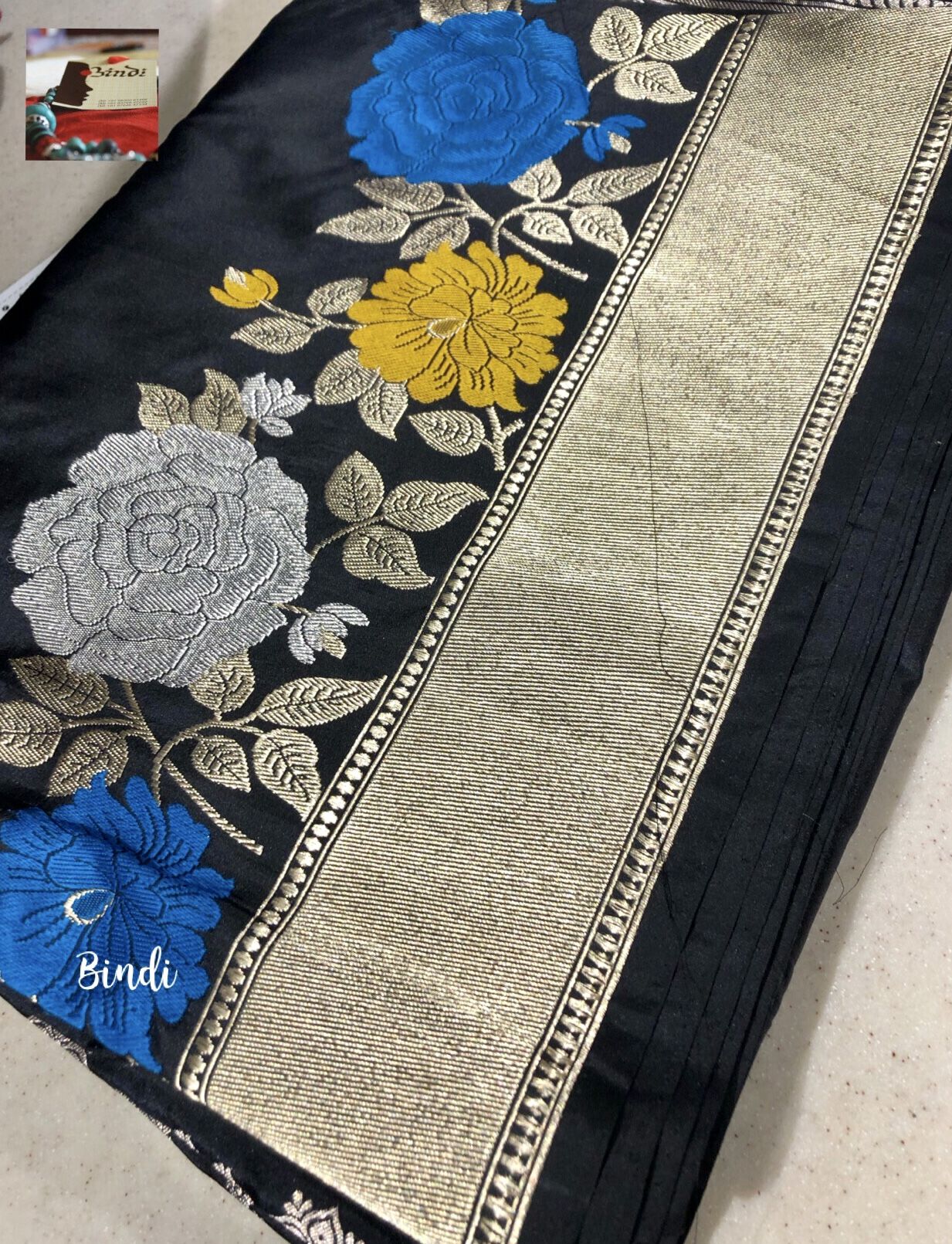 Black Roses – Handwoven Pure Katan Banarasi Saree