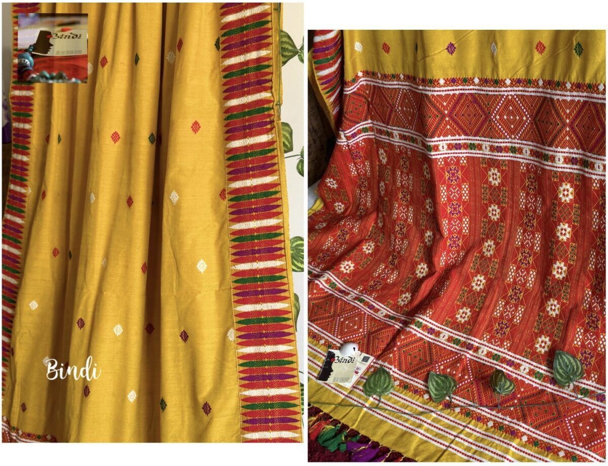 Paat x Eri Silk Saree. Eri silk & Muga Gicha Silk is used in design Motifs.