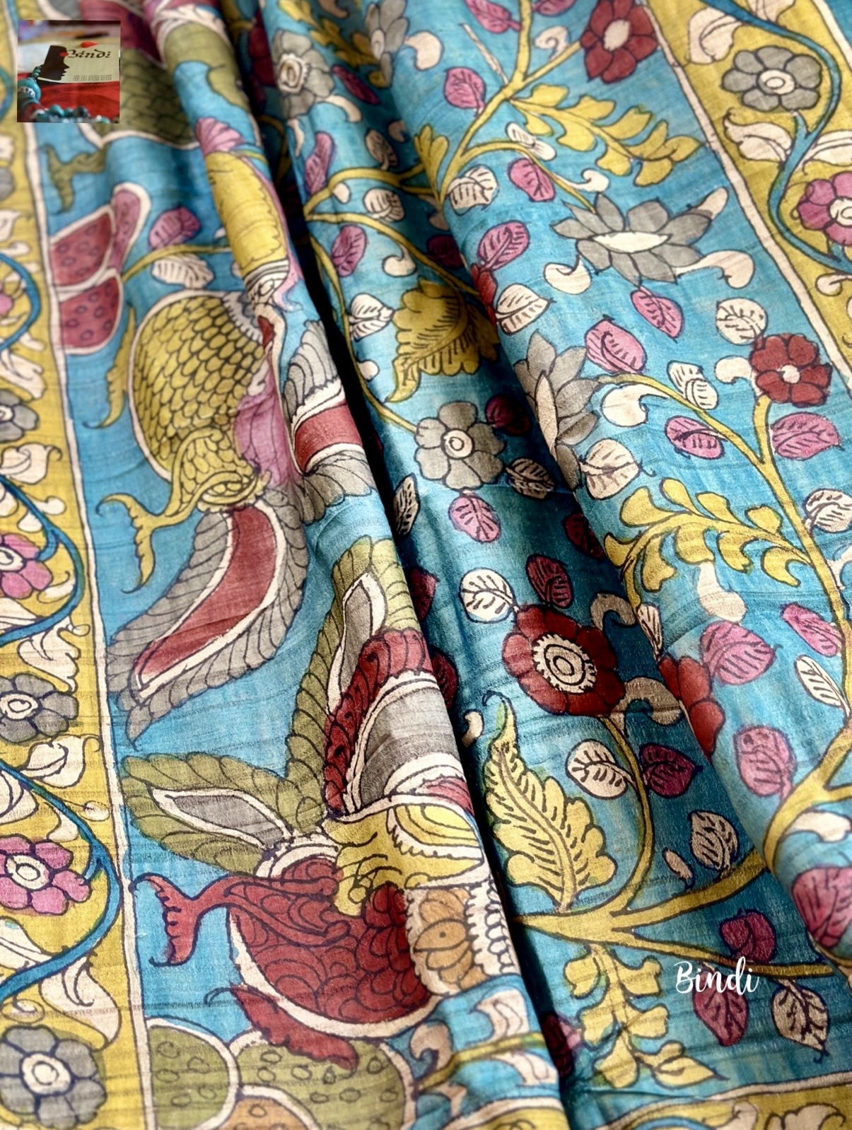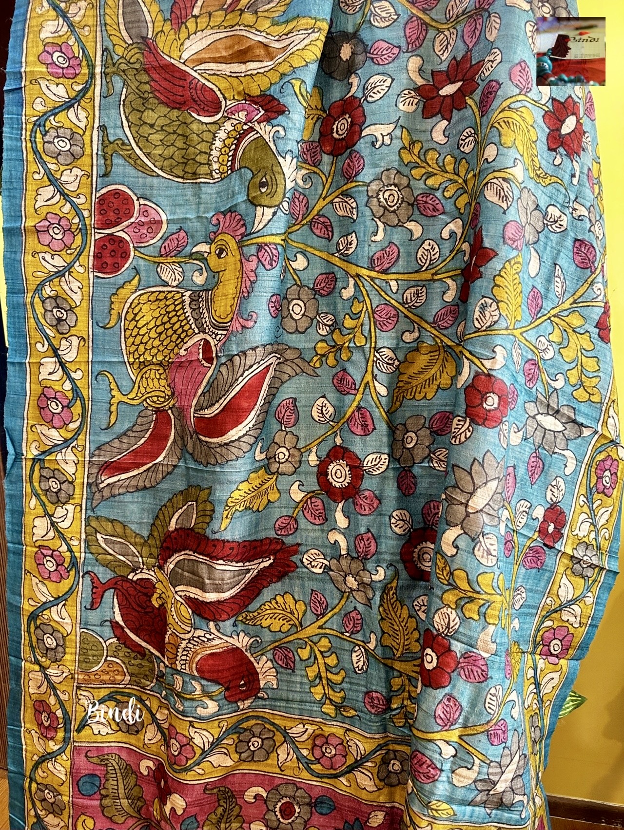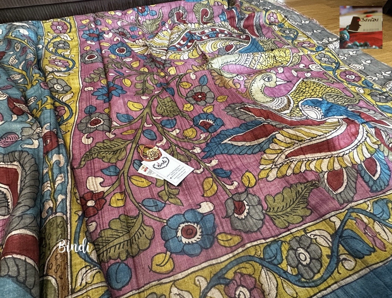 Hand-painted in the Srikalahasti pen Kalamkari on premium Tussar