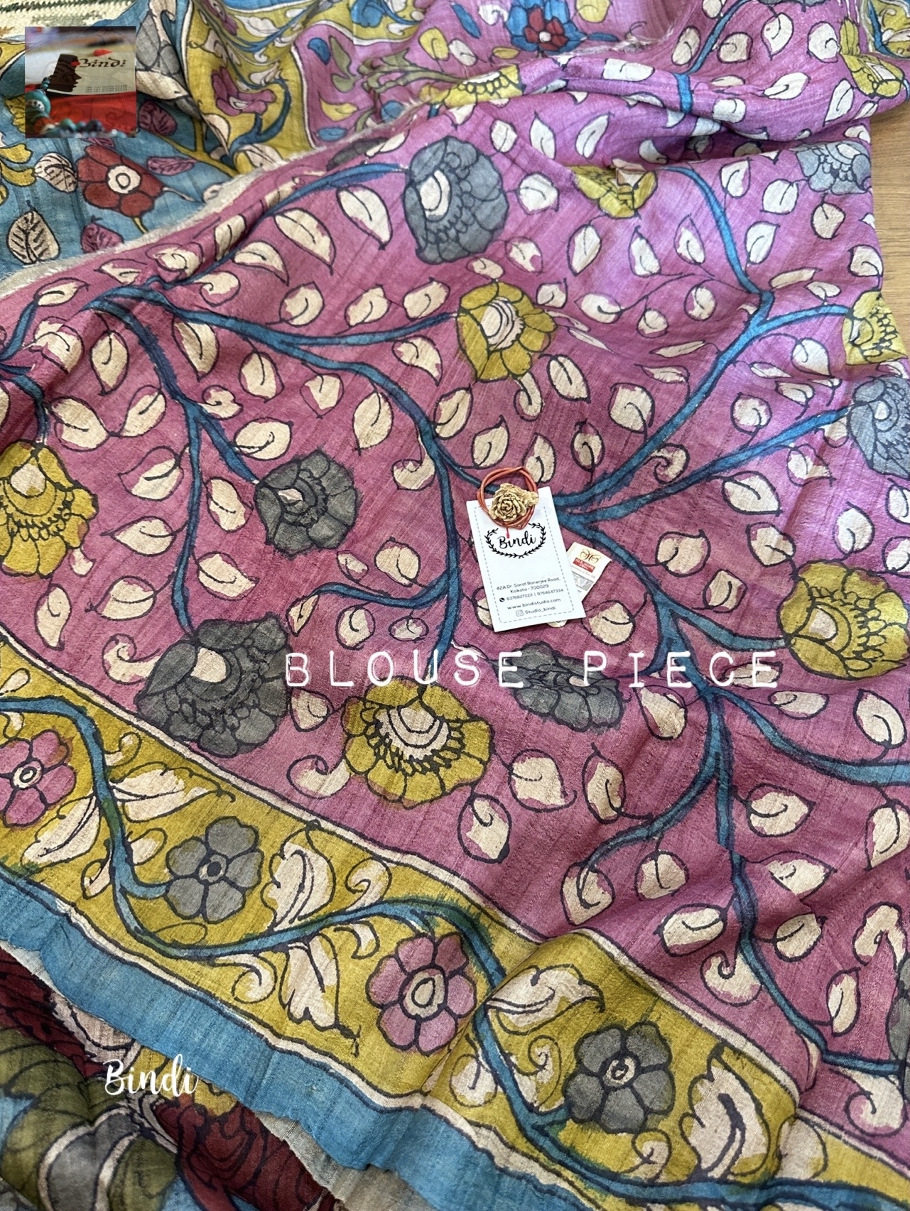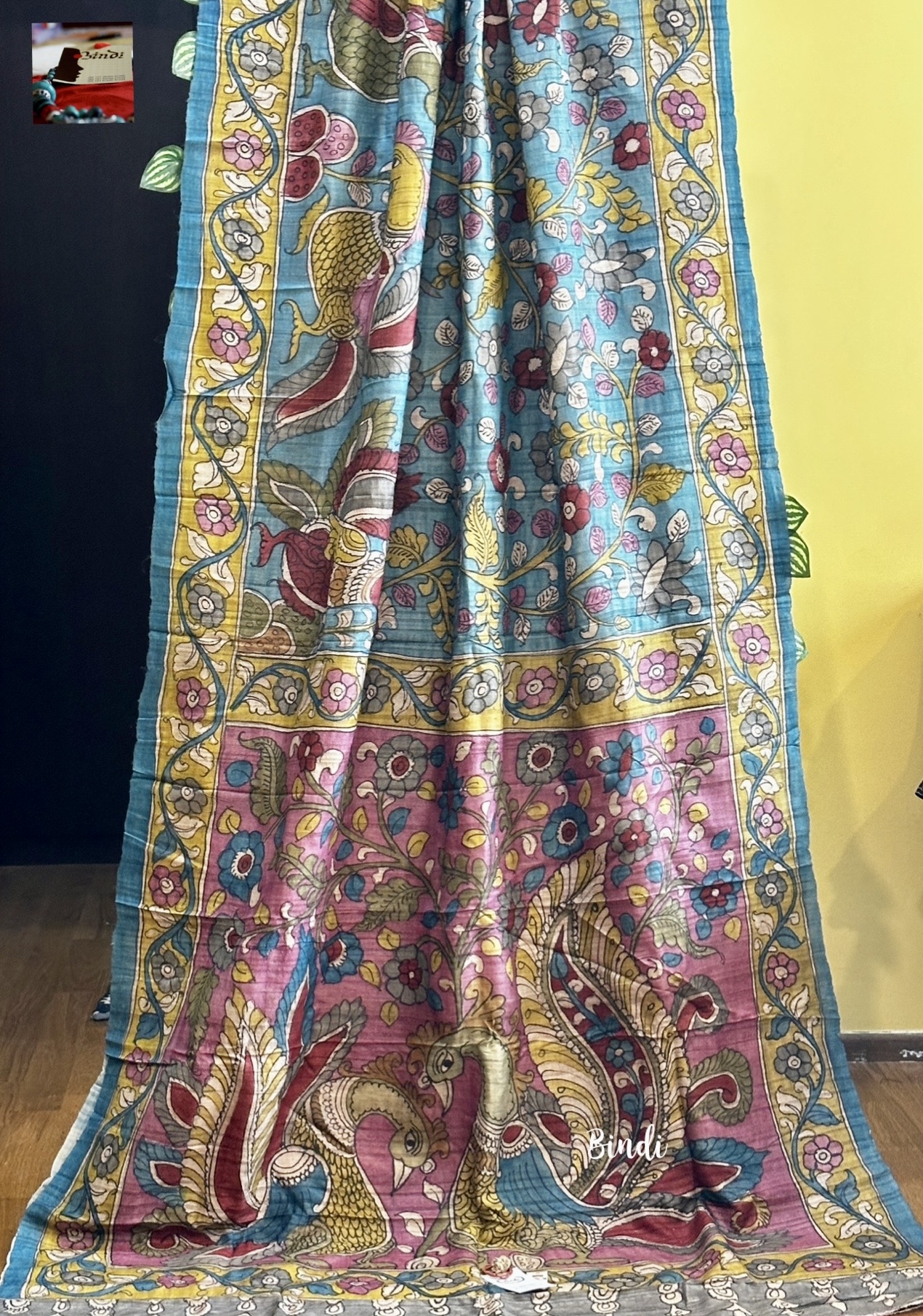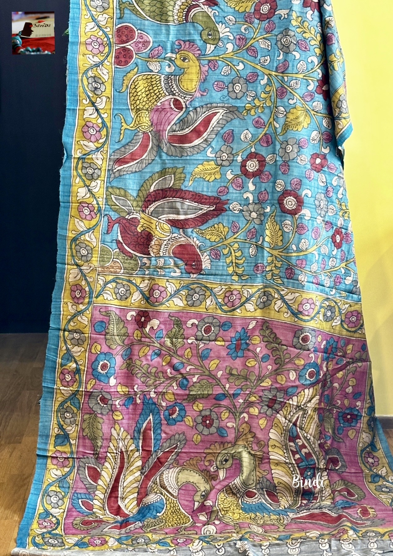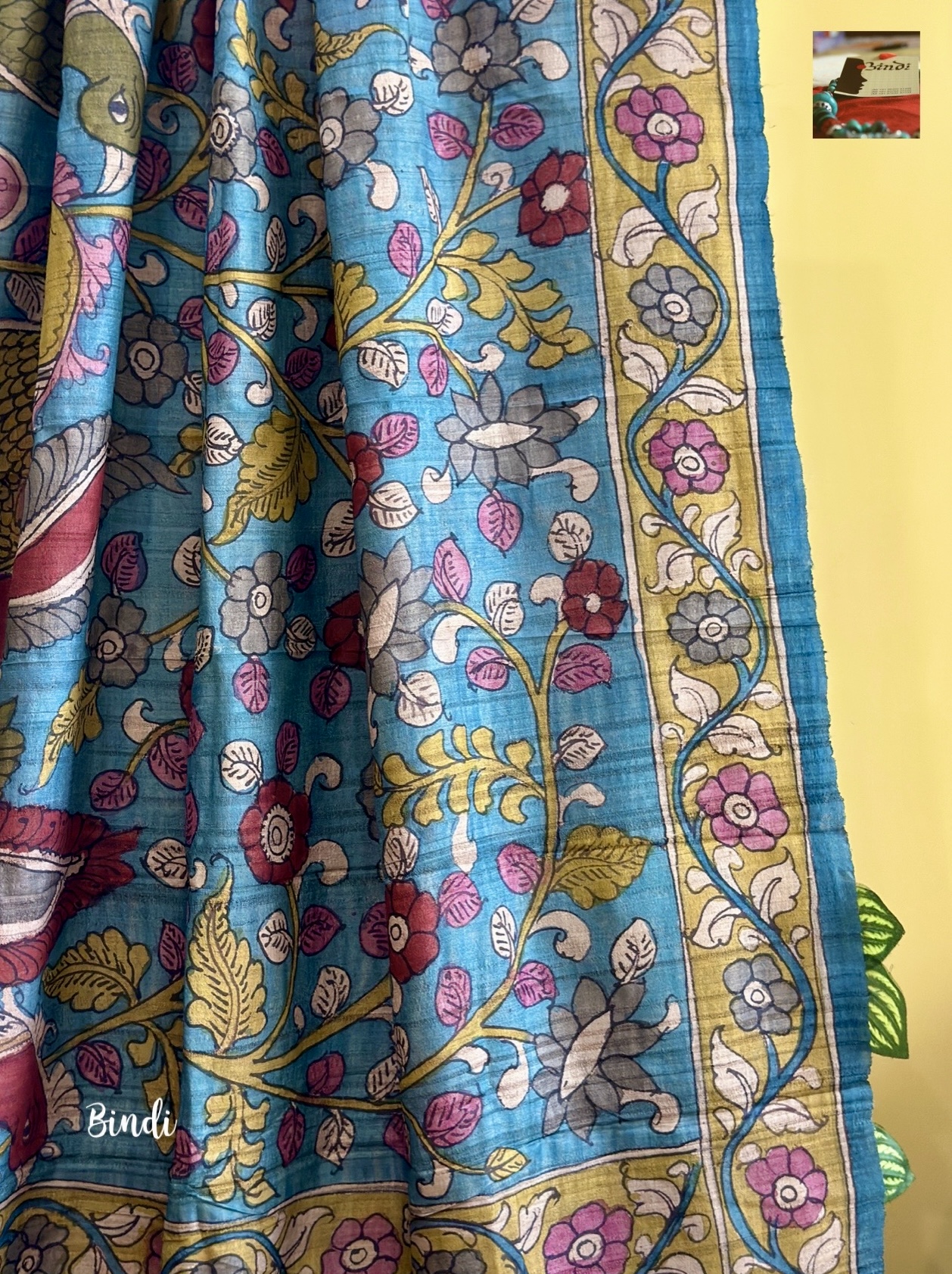 Hand-painted in the Srikalahasti pen Kalamkari on premium Tussar