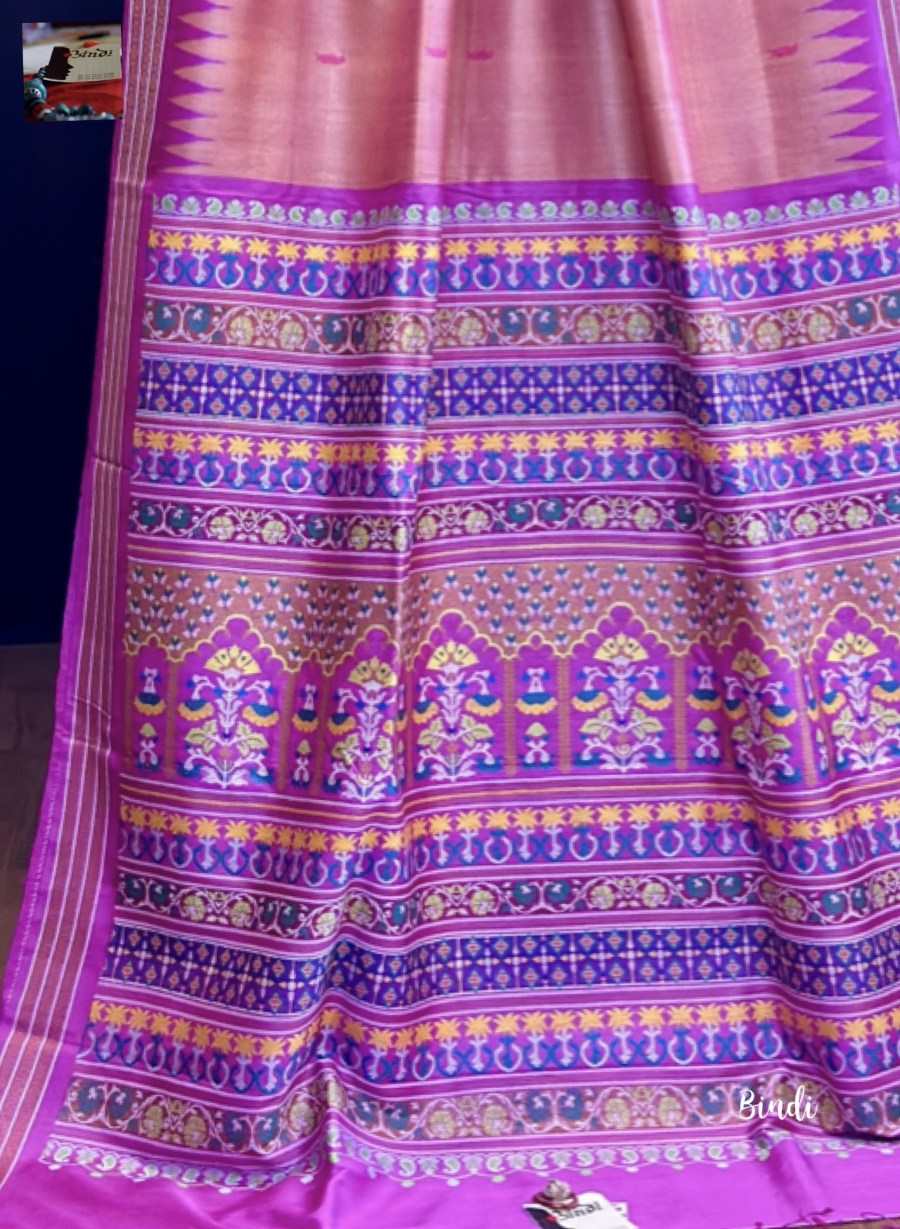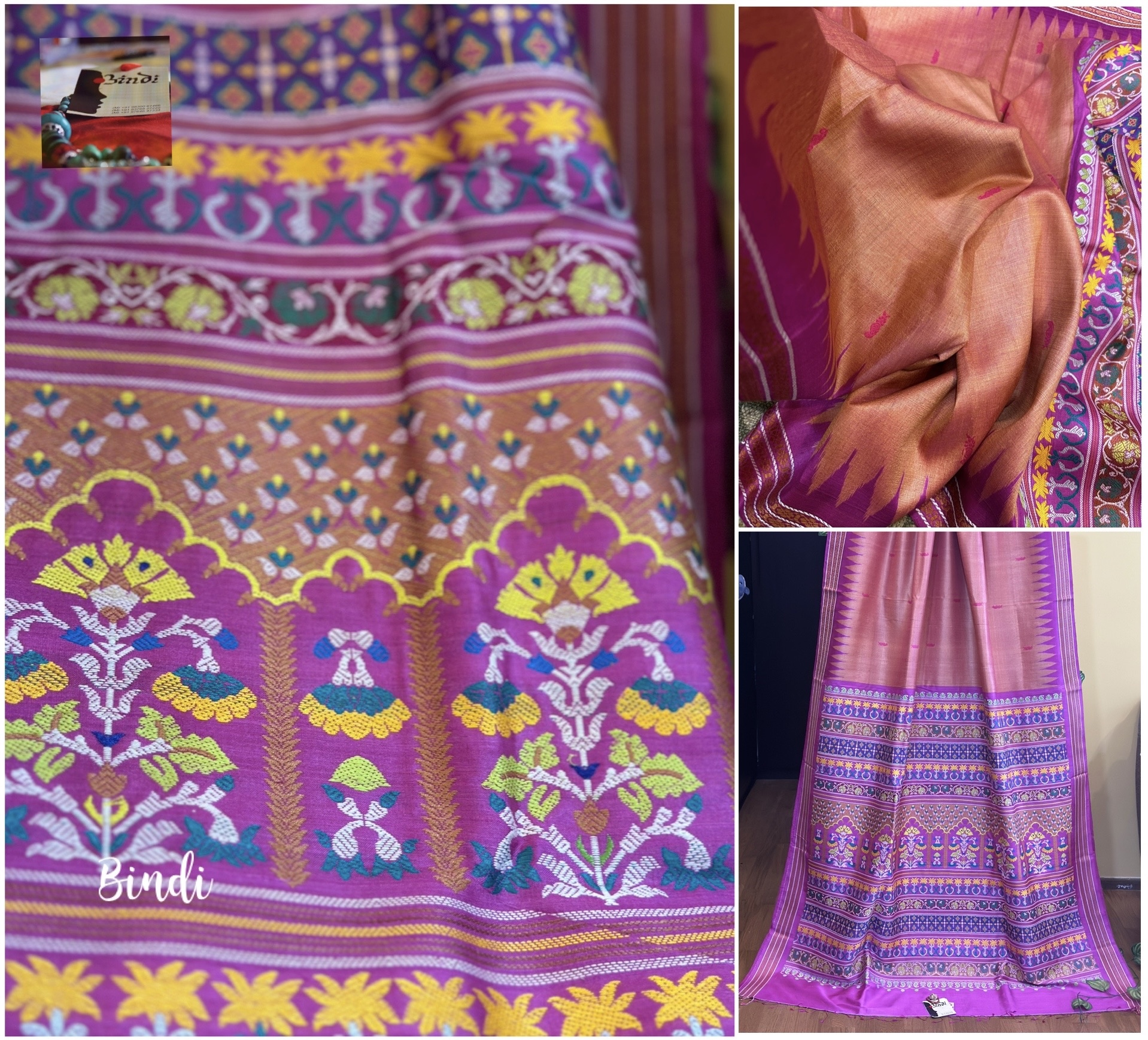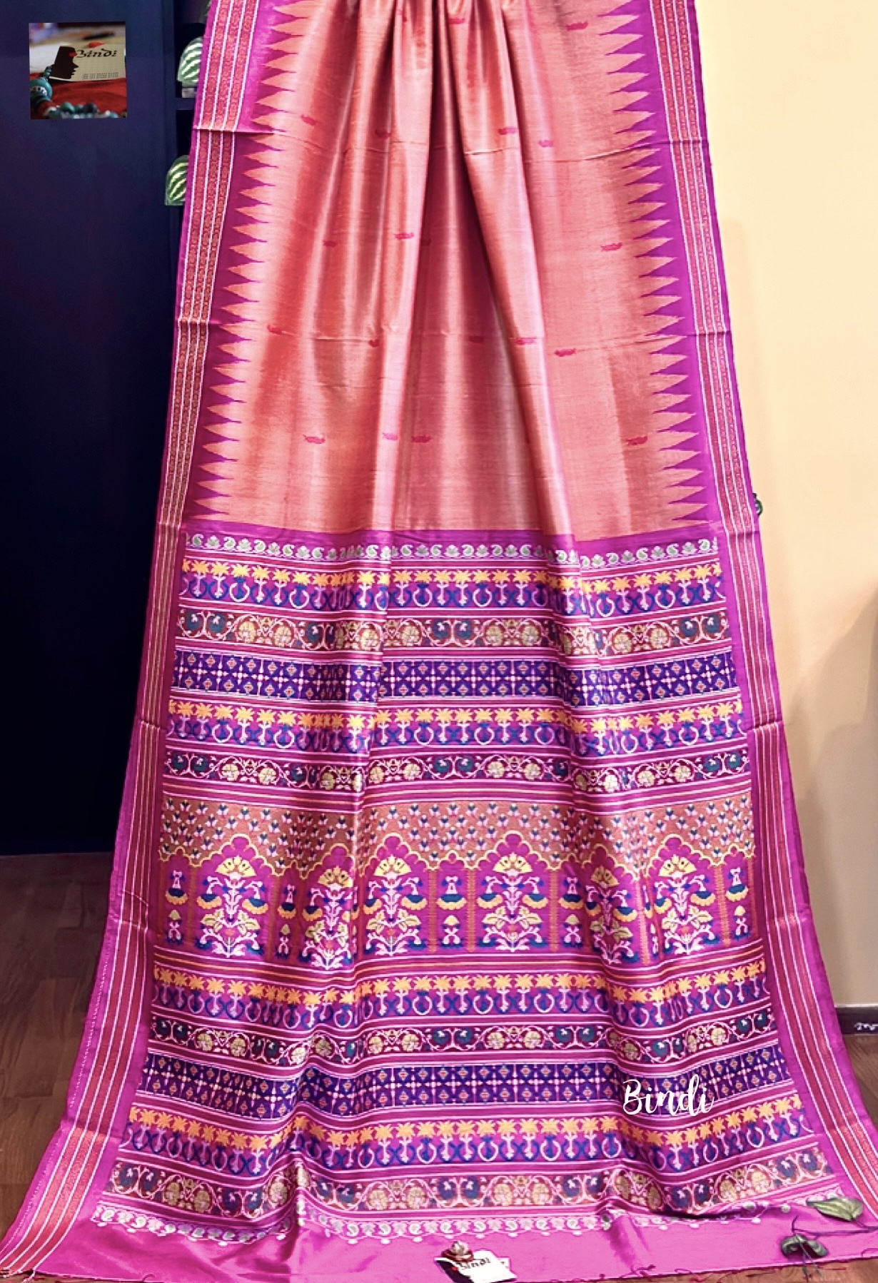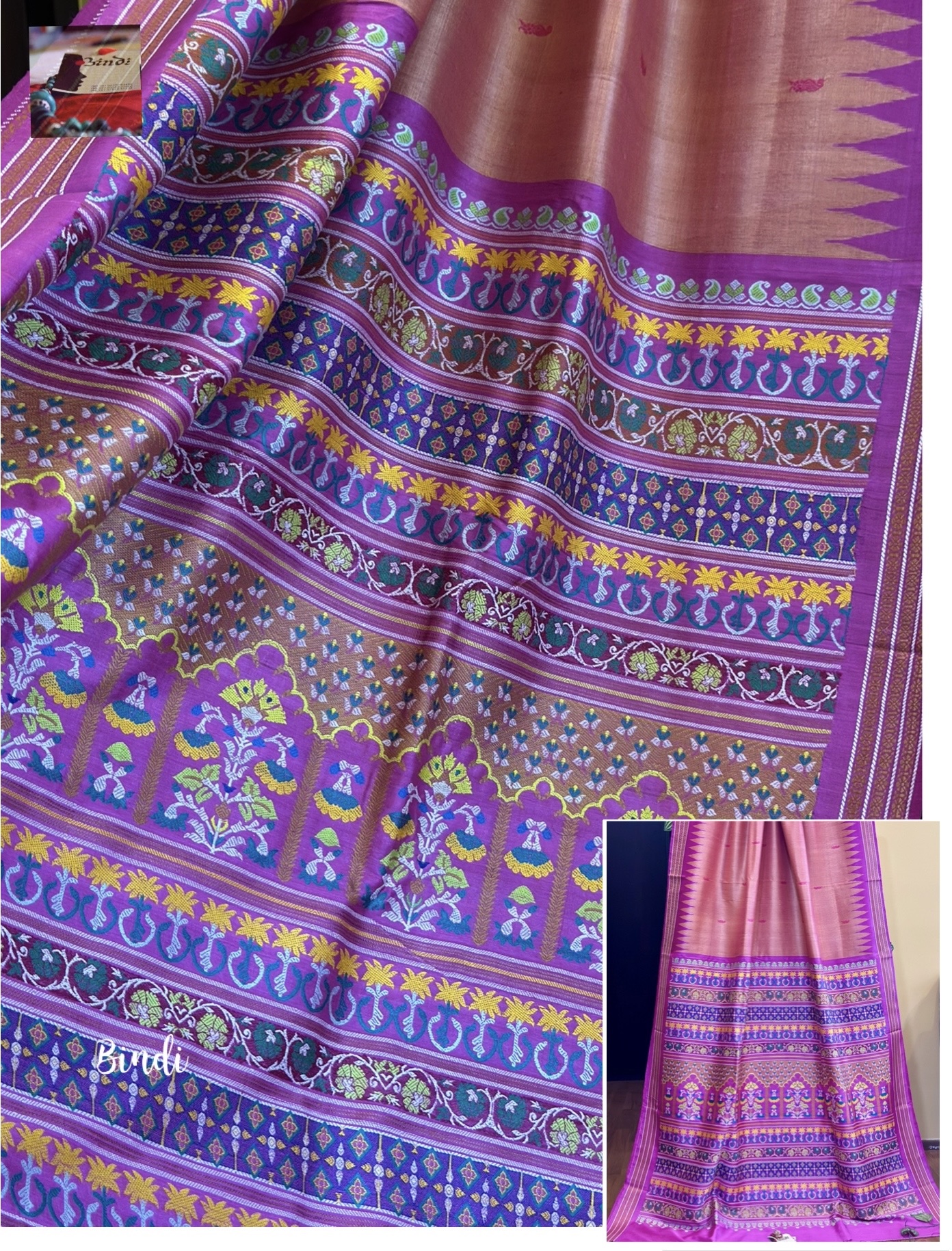 MUGHAL GARDEN I – HANDWOVEN HANDSPUN FINE GOPALPUR TUSSAR JAALA PALLA SAREEk