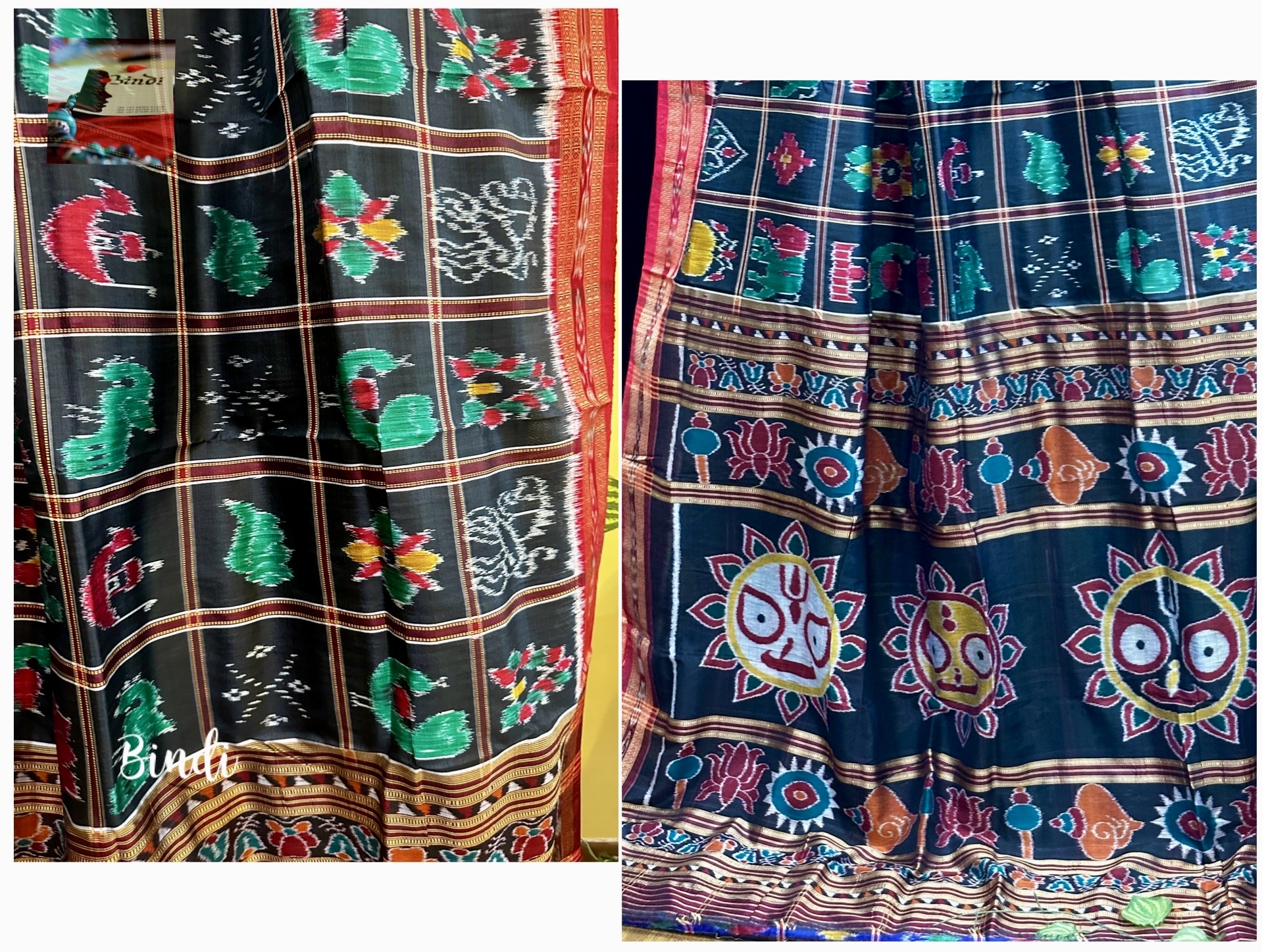 NABAKOTHI (Black) LORD JAGANNATH PALLU – HANDWOVEN PURE IKKAT SILK