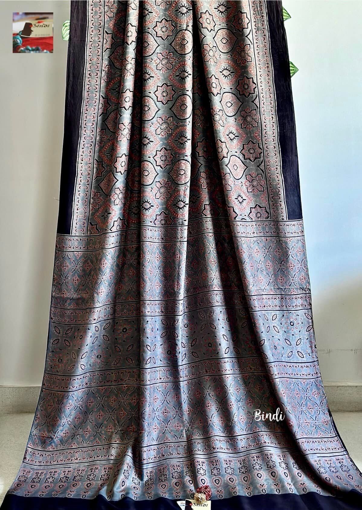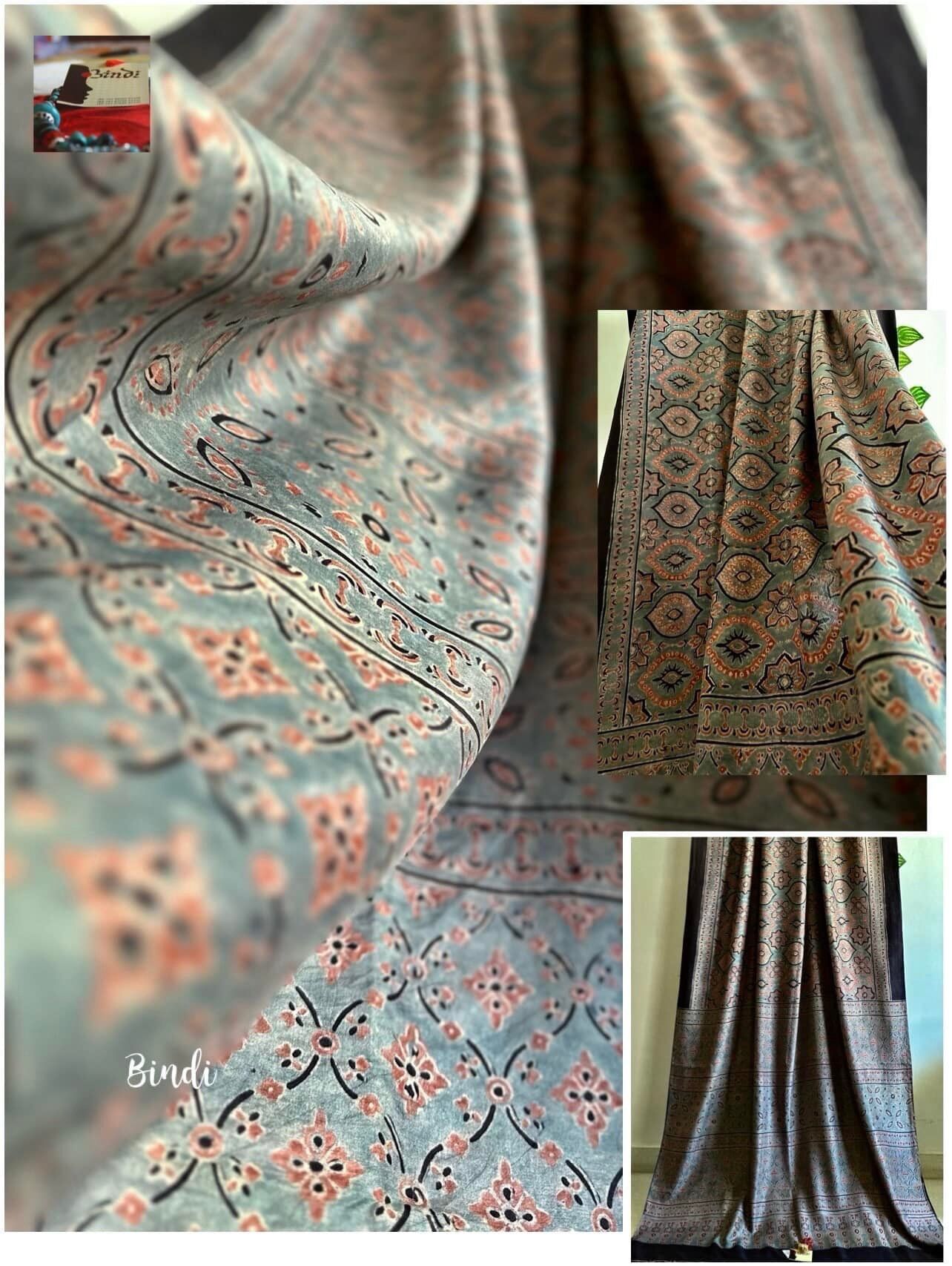 NIHARIKA I ~ RARE AND EXQUISITE AJRAKH ON PURE MULBERRY SILK