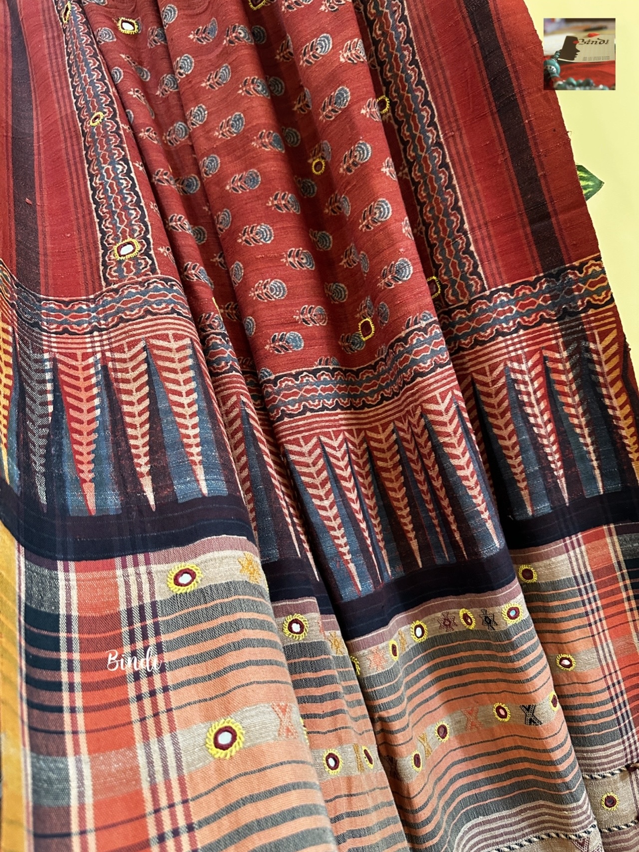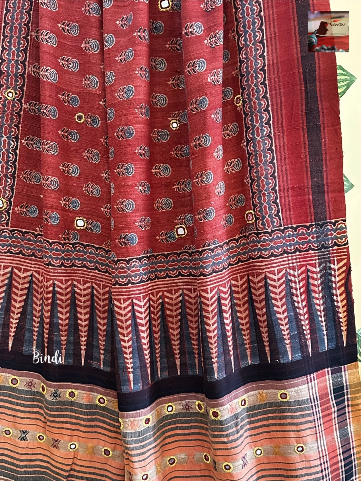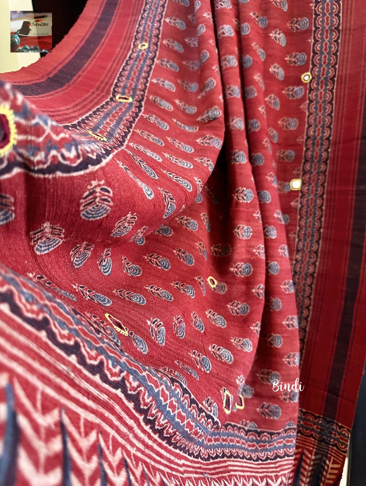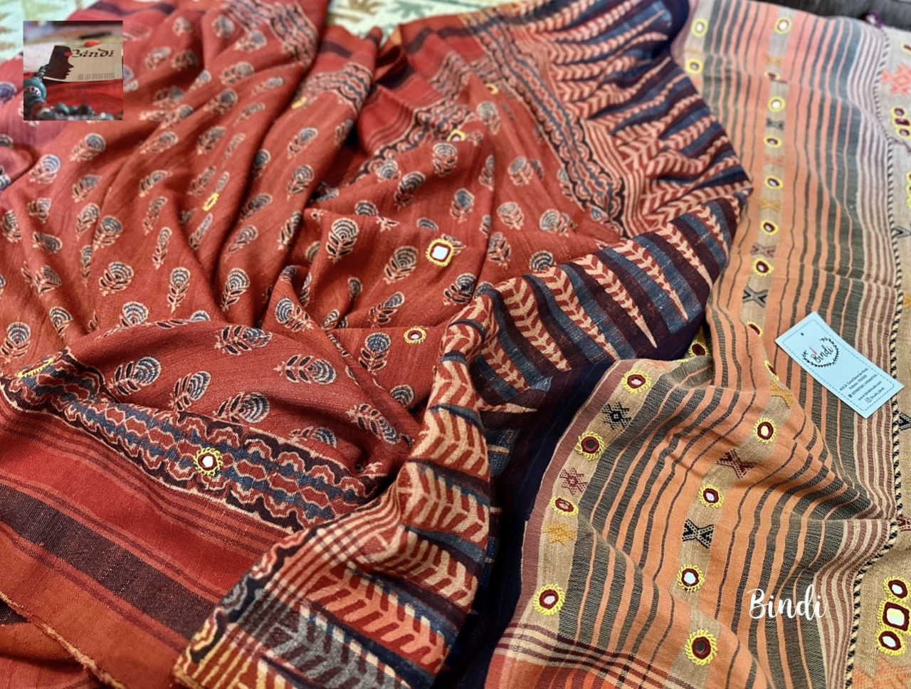 Rhythms of Earth – Ajrakh Bhujodi Tussar with Mirror work