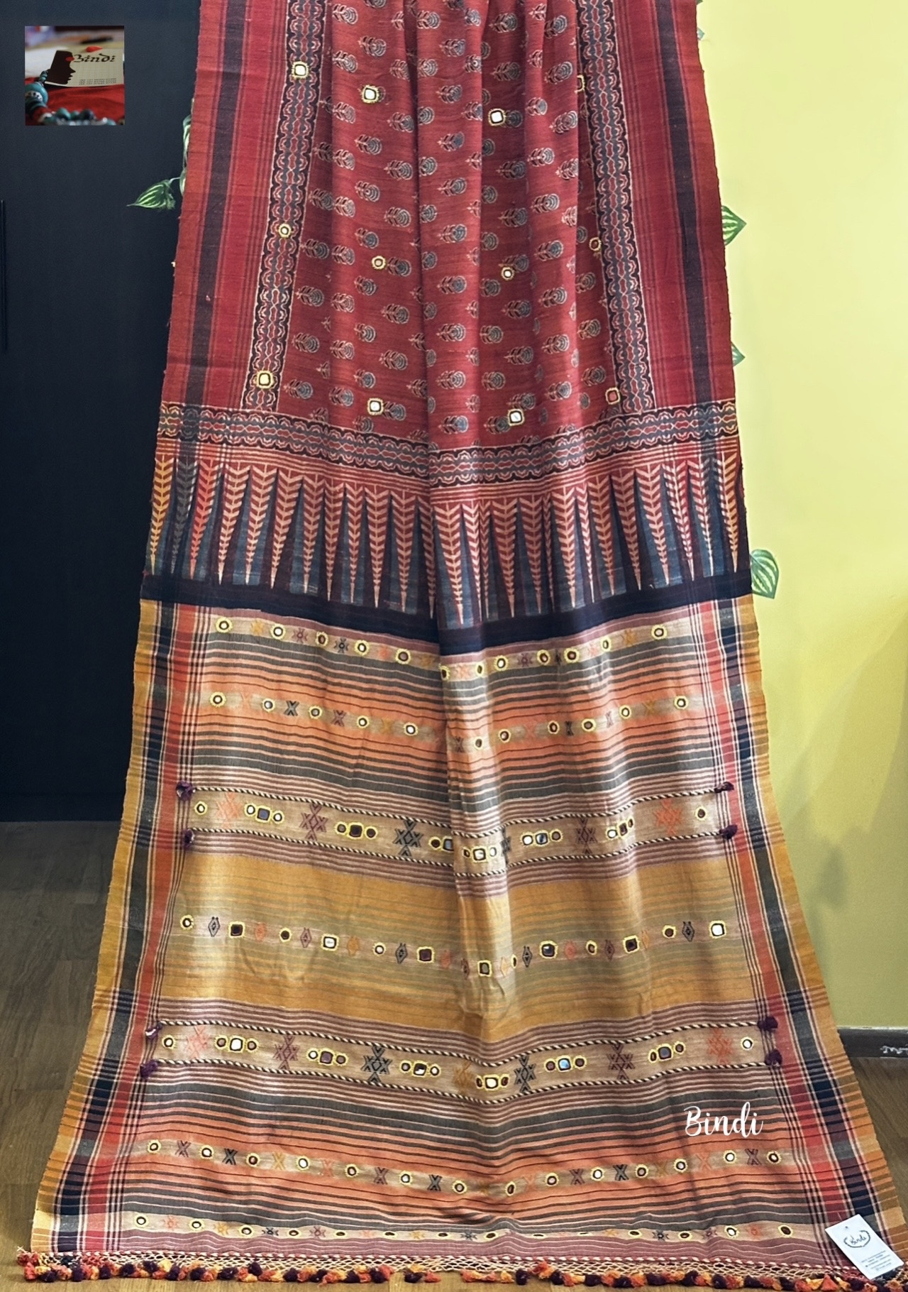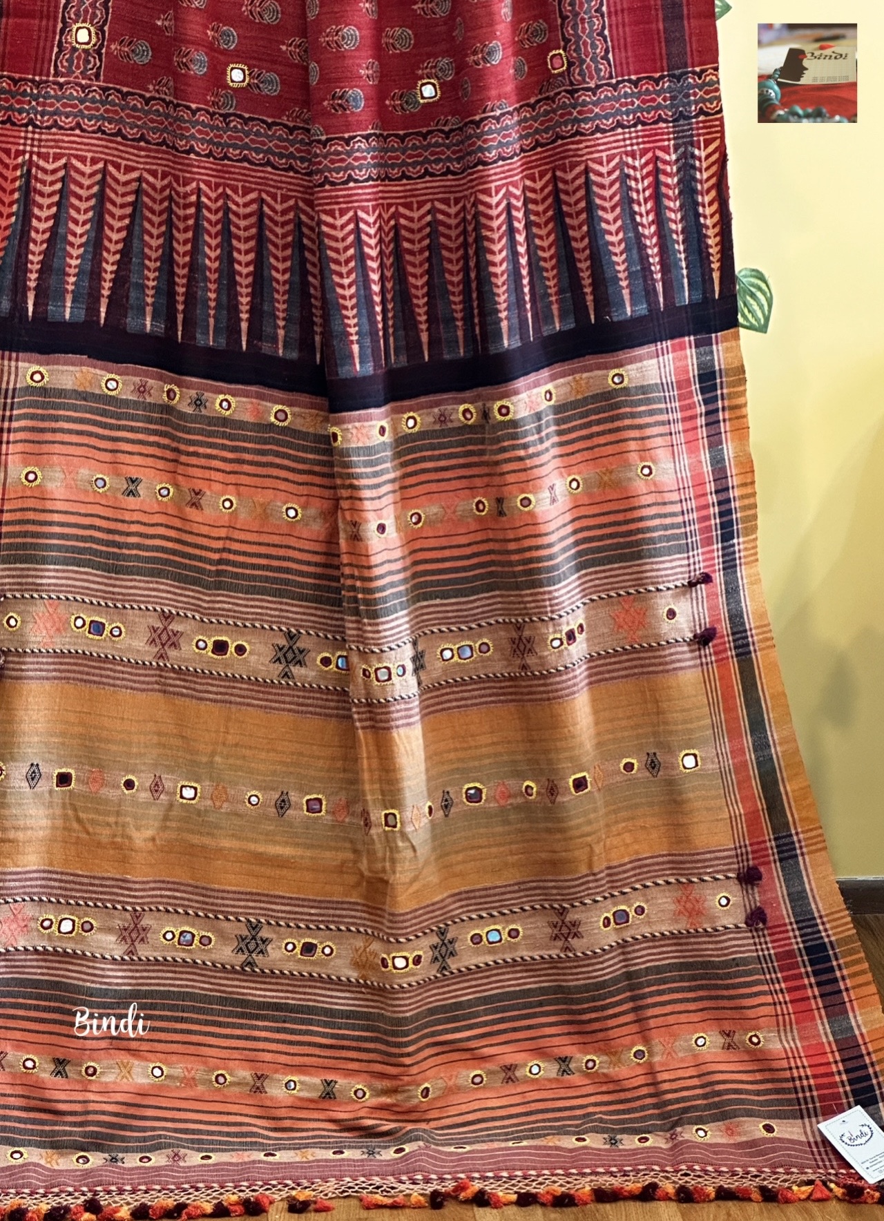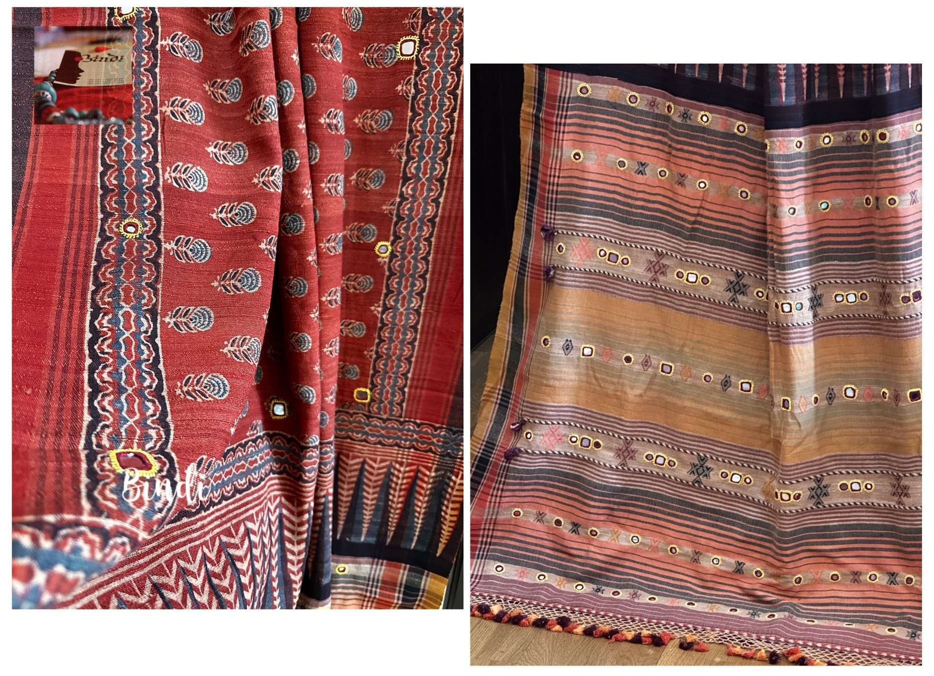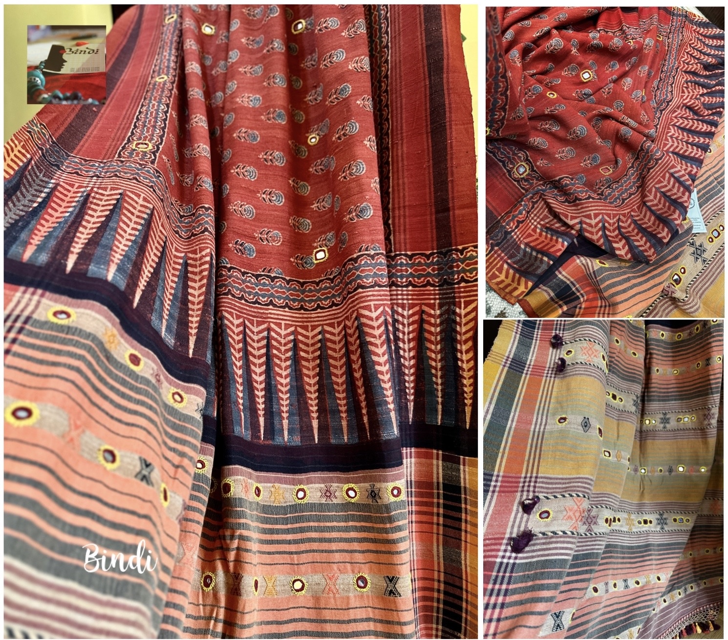 Rhythms of Earth – Ajrakh Bhujodi Tussar with Mirror work