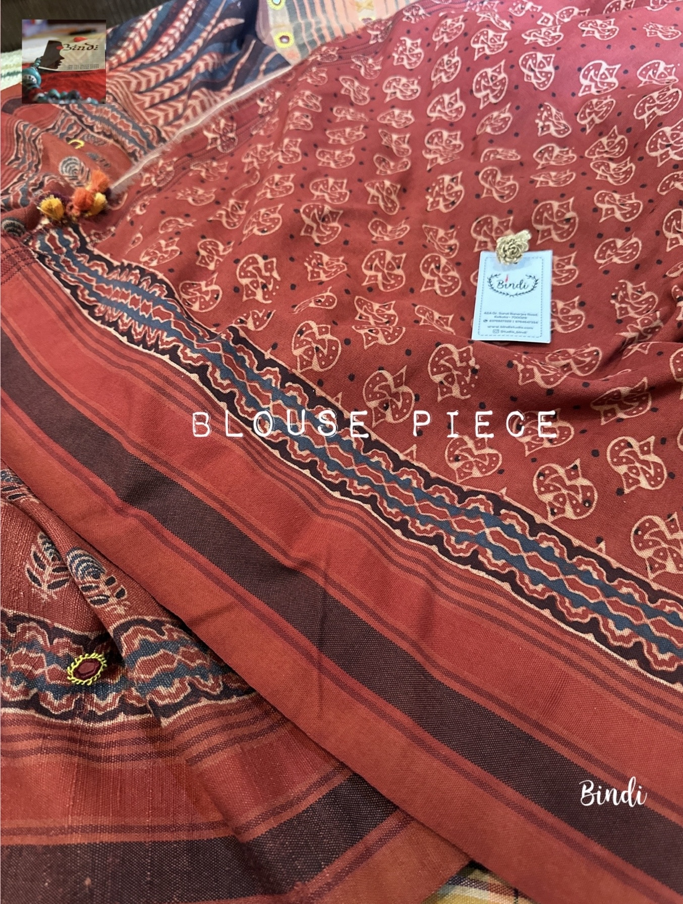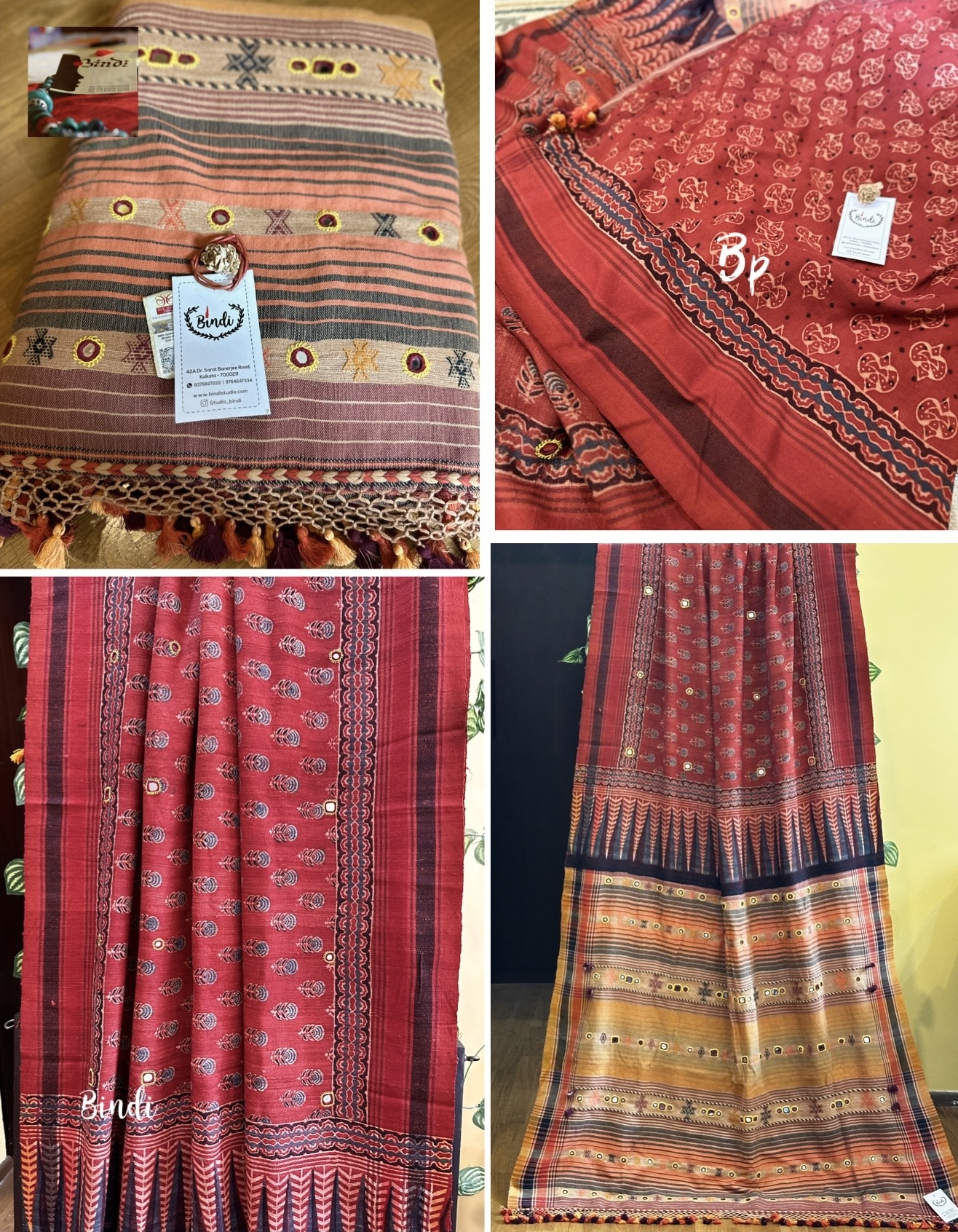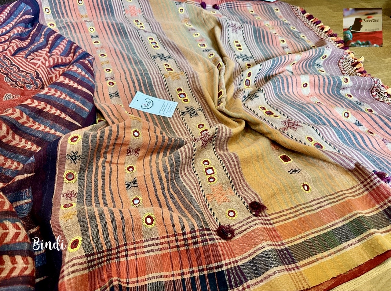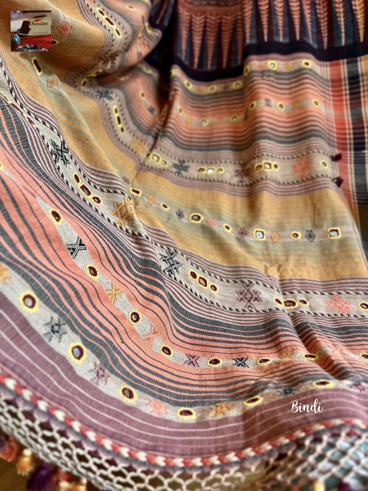 Rhythms of Earth – Ajrakh Bhujodi Tussar with Mirror work
