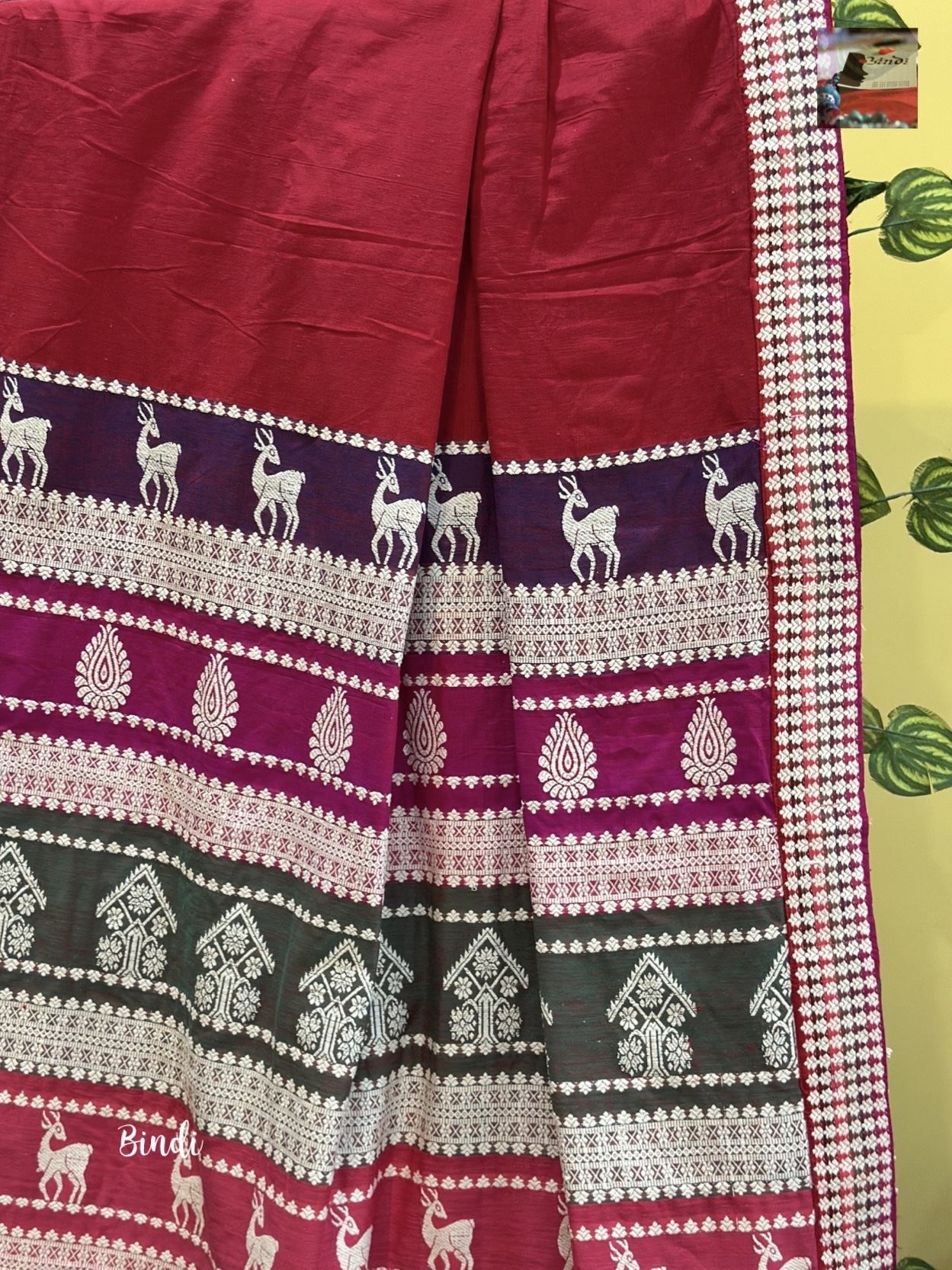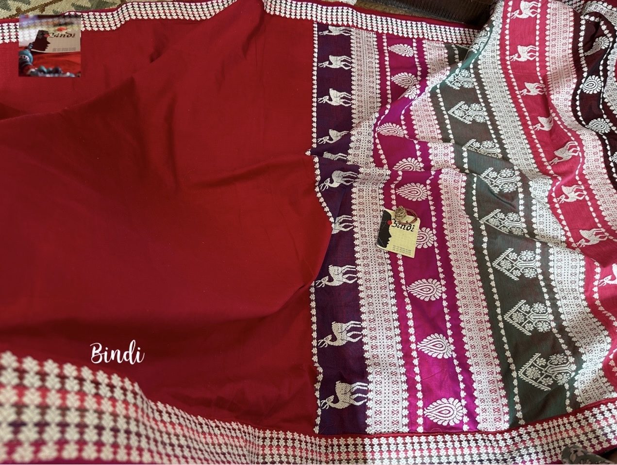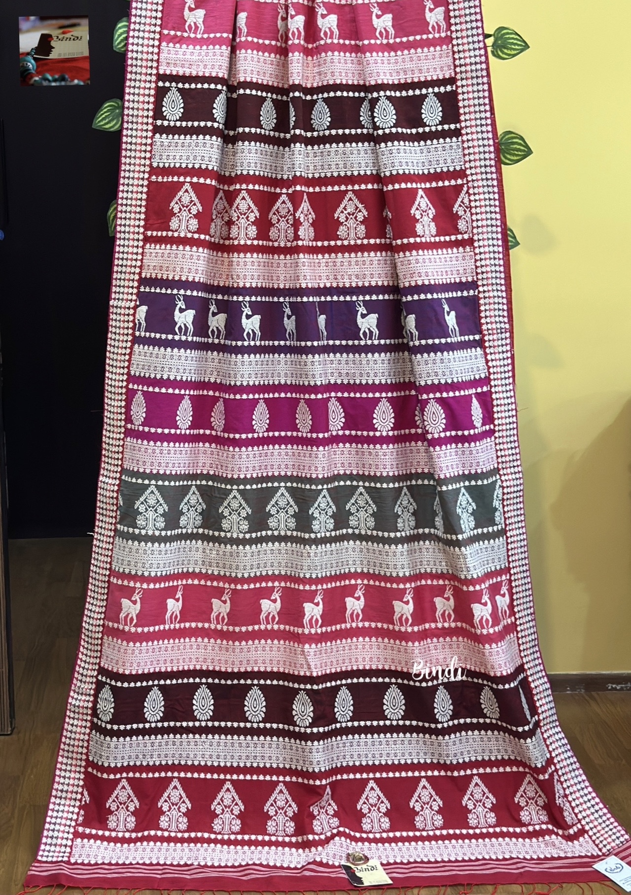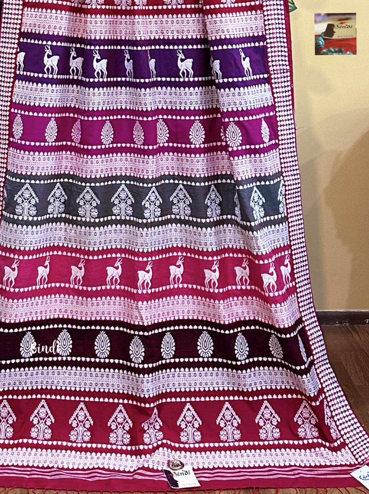 This lightweight, breathable weave blends the rich heritage of Assam handloom with the artistic inspiration of Orissa’s renowned Berhampur Double palla silk. The motifs highlight traditional Assamese Cultural heritage and lifestyle.