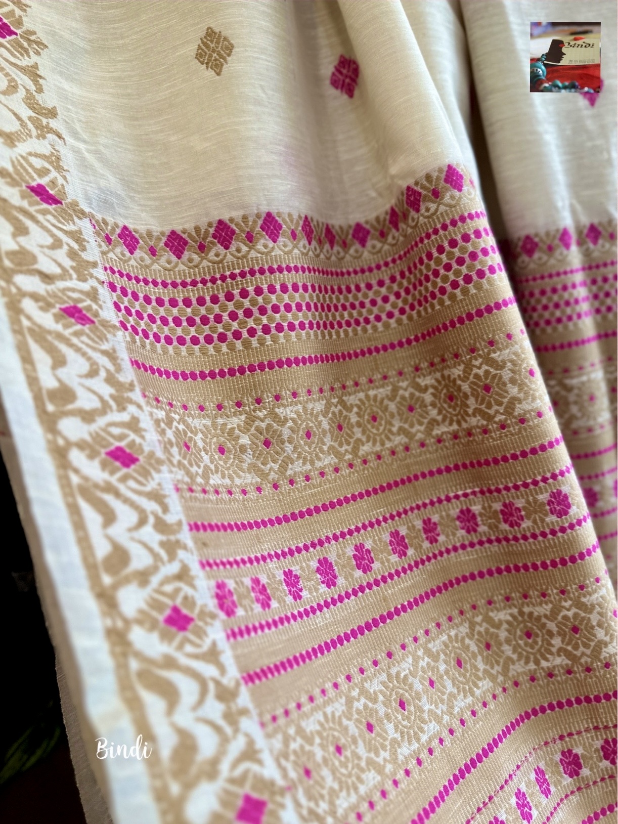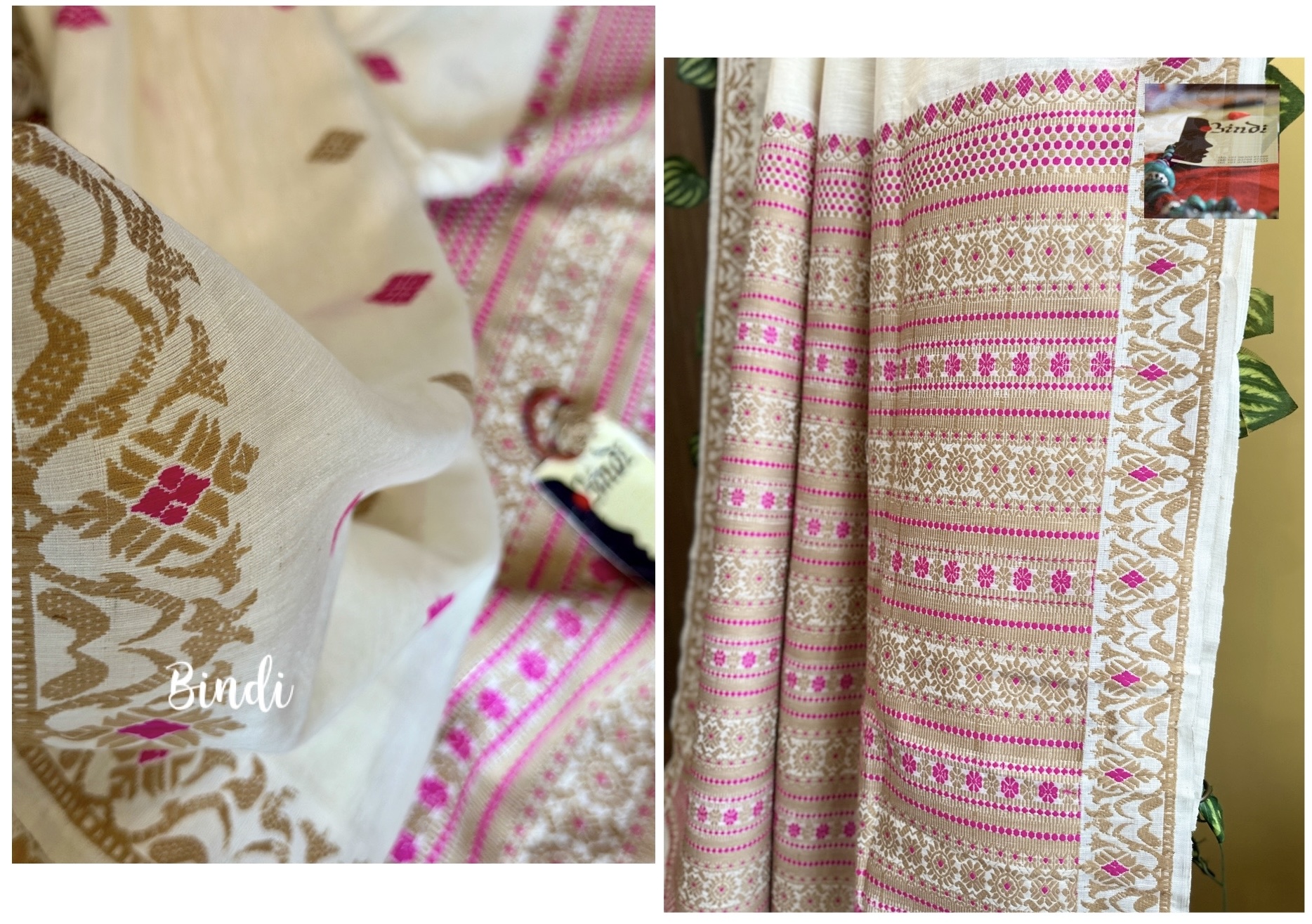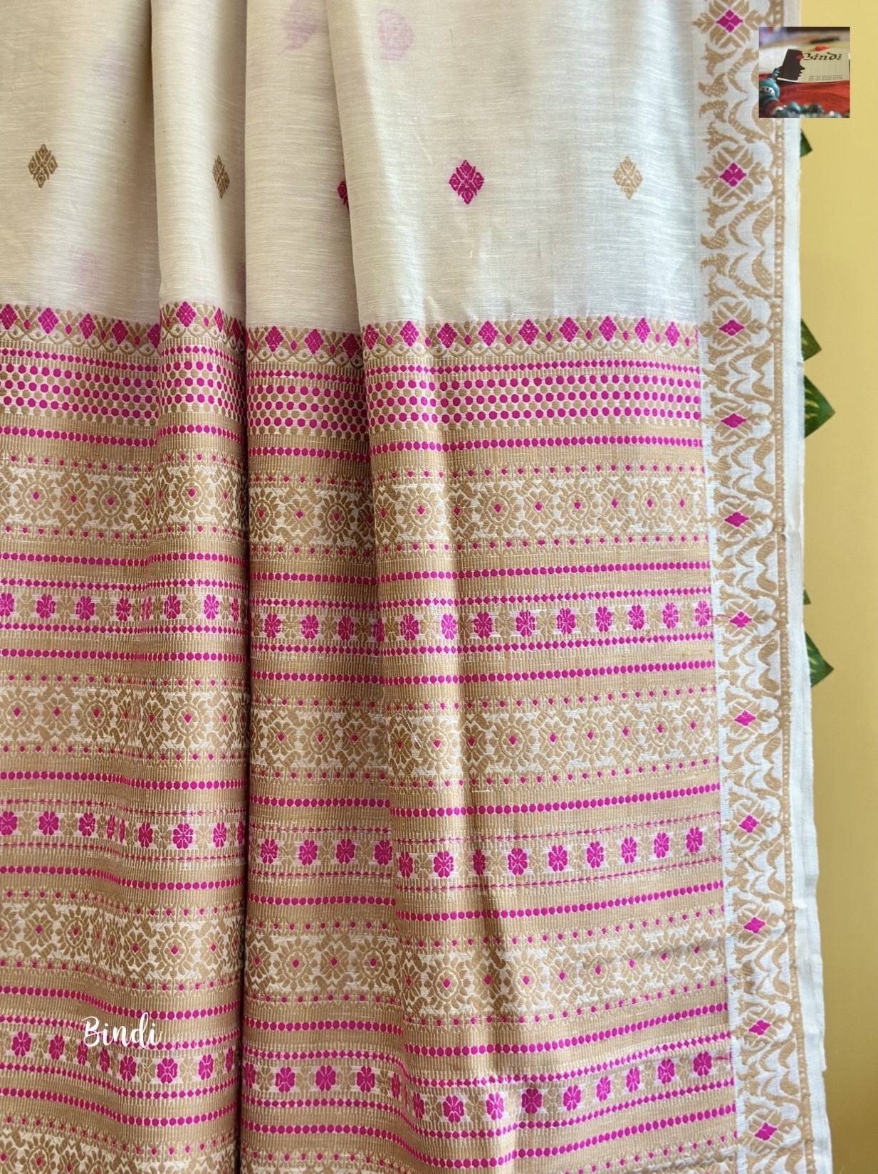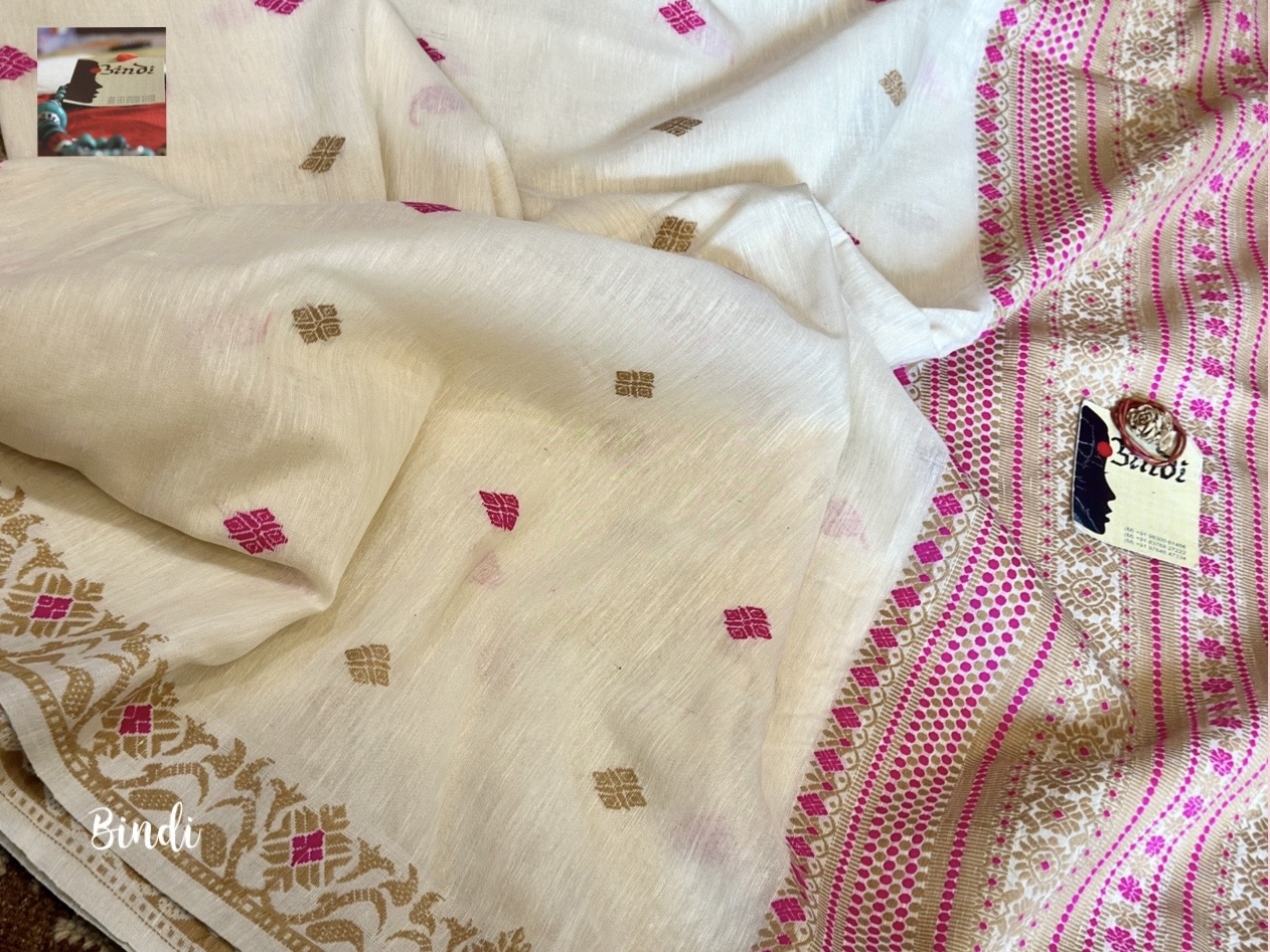 This beautiful saree is woven in Sualkuchi, Assam, using Eri silk fabric from Meghalaya, celebrated for its finer, softer feel. Eri, also known as Ahimsa silk, is produced without harming the silkworm, making it a truly sustainable and cruelty-free textile.