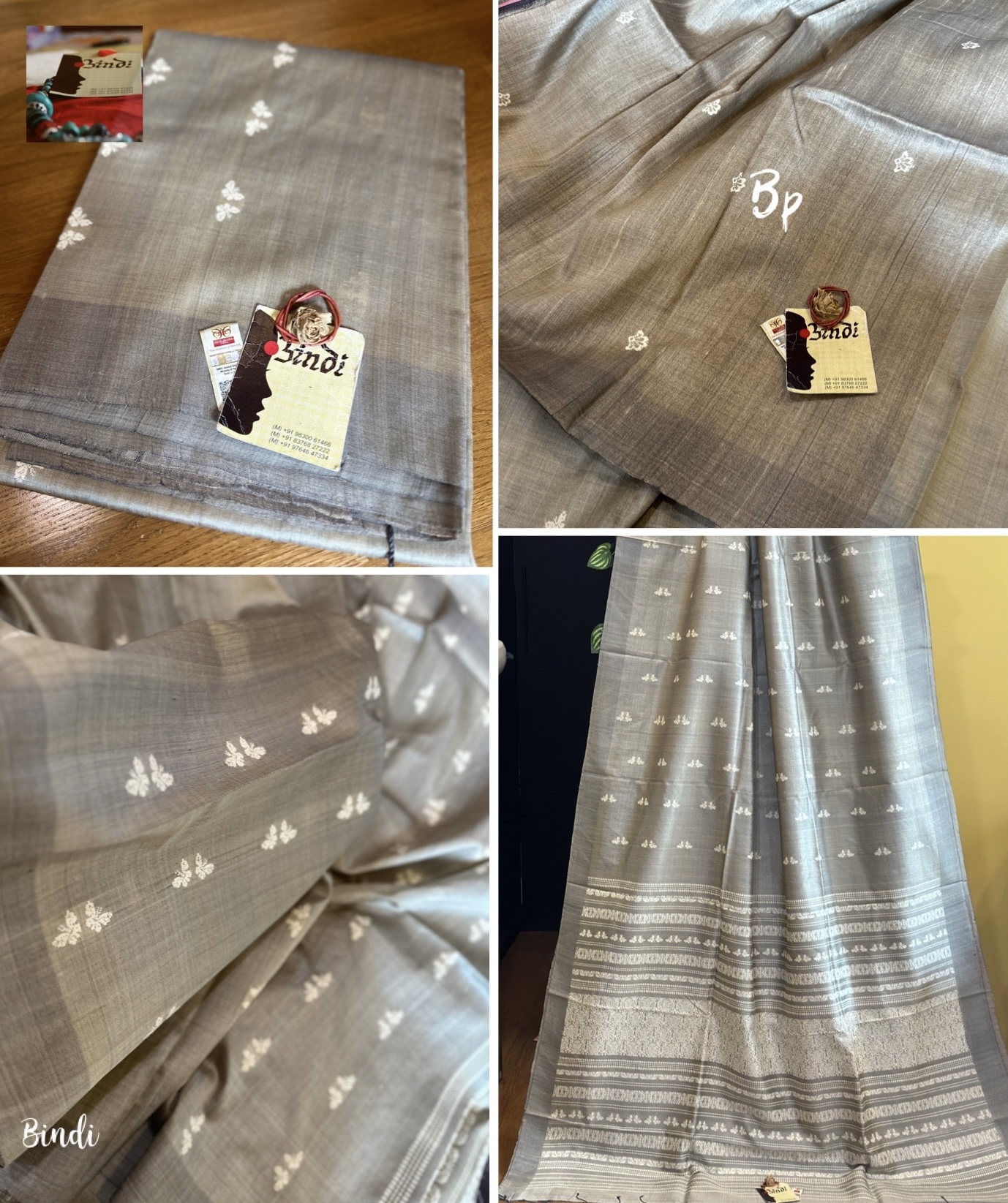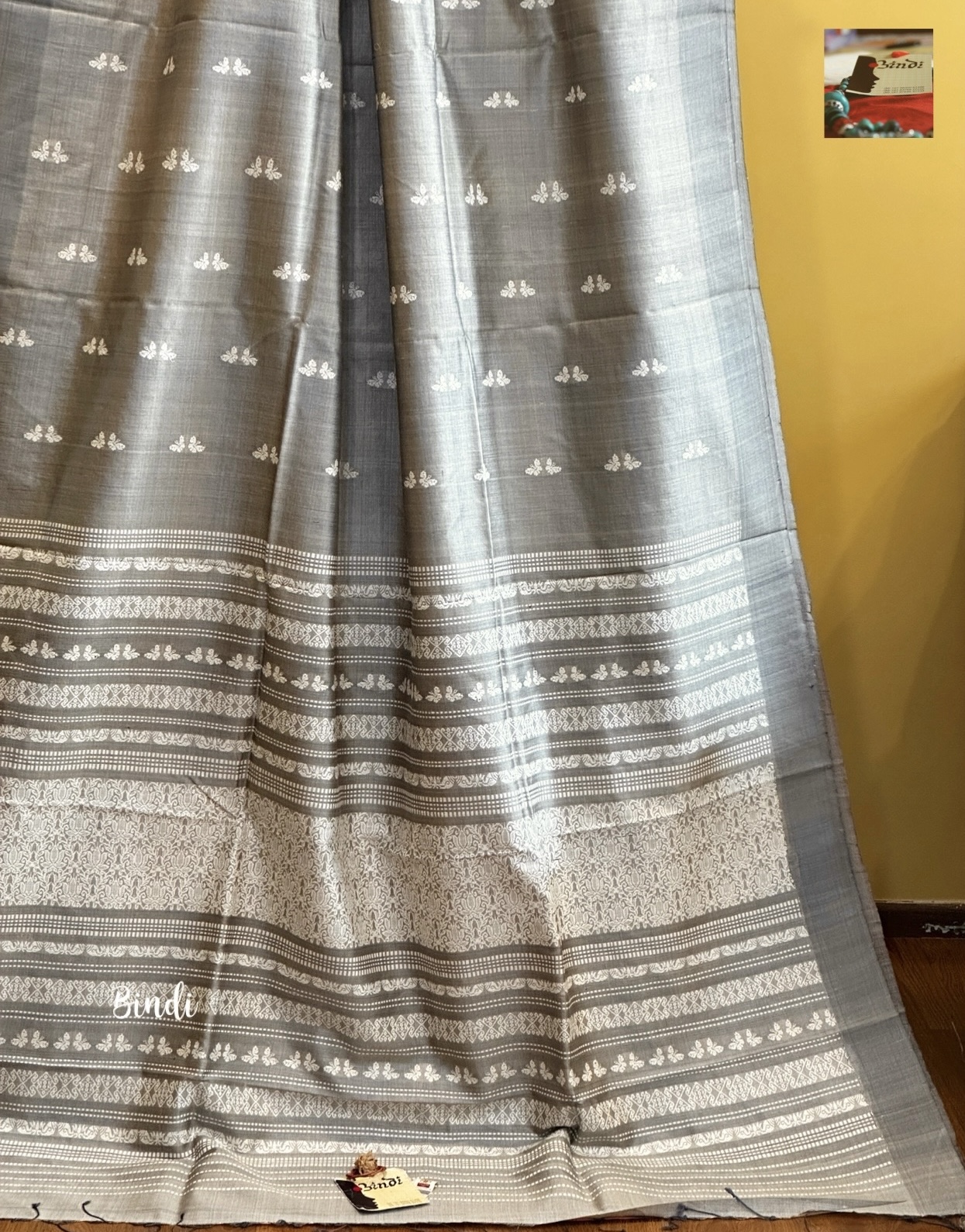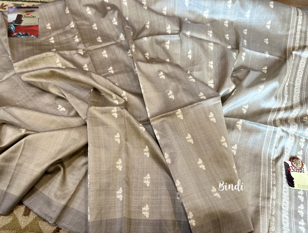 Handwoven handspun fine tussar from Gopalpur, Odisha. The pallu features intricate jalla work, the body is adorned with delicate butterfly motifs in extra-weft technique. Saree length 6.4 meters including blouse piece