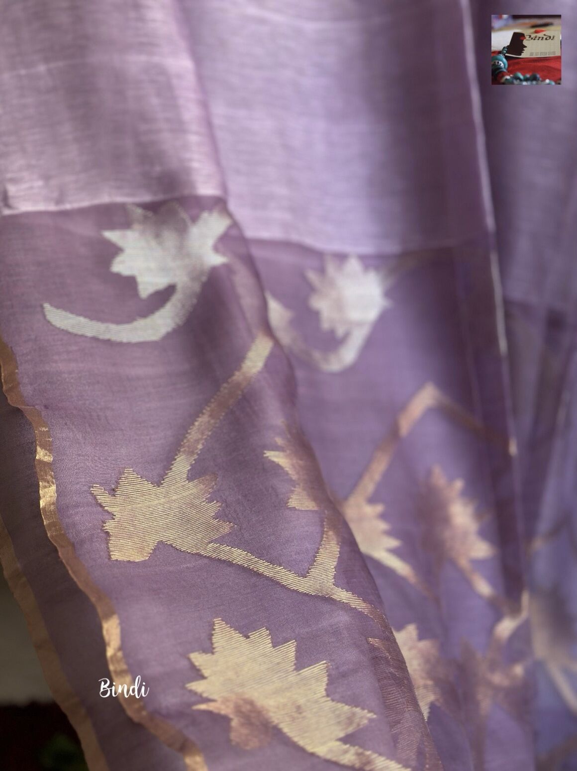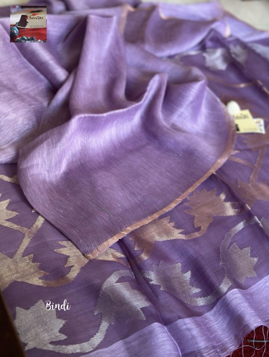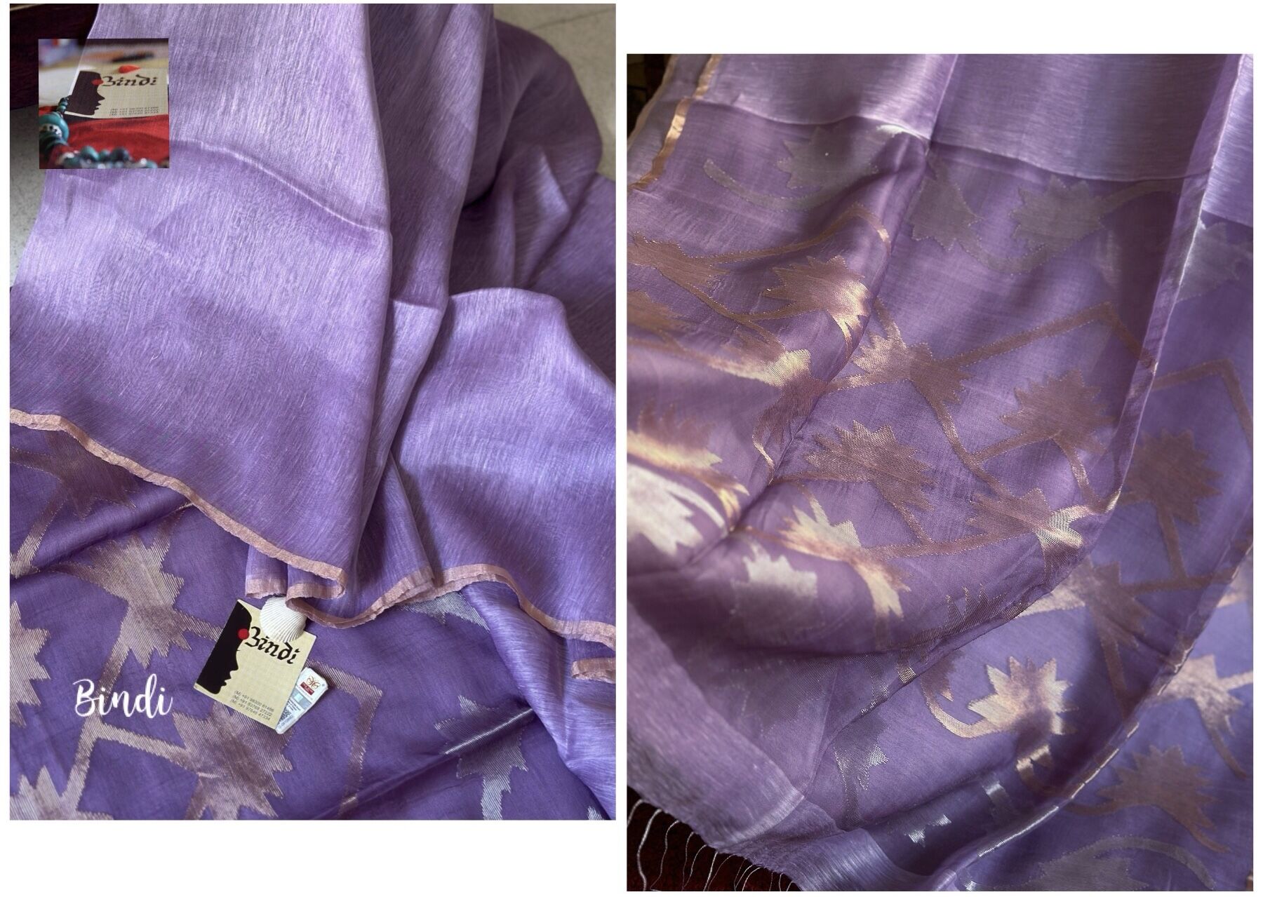 Violette Royale ~ Handwoven pure linen Silk Jamdani Saree