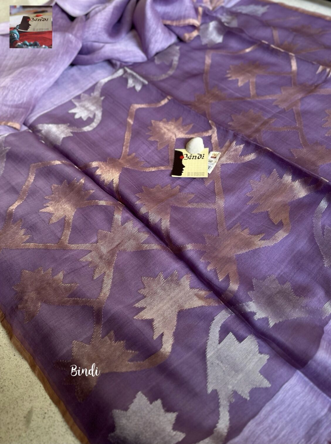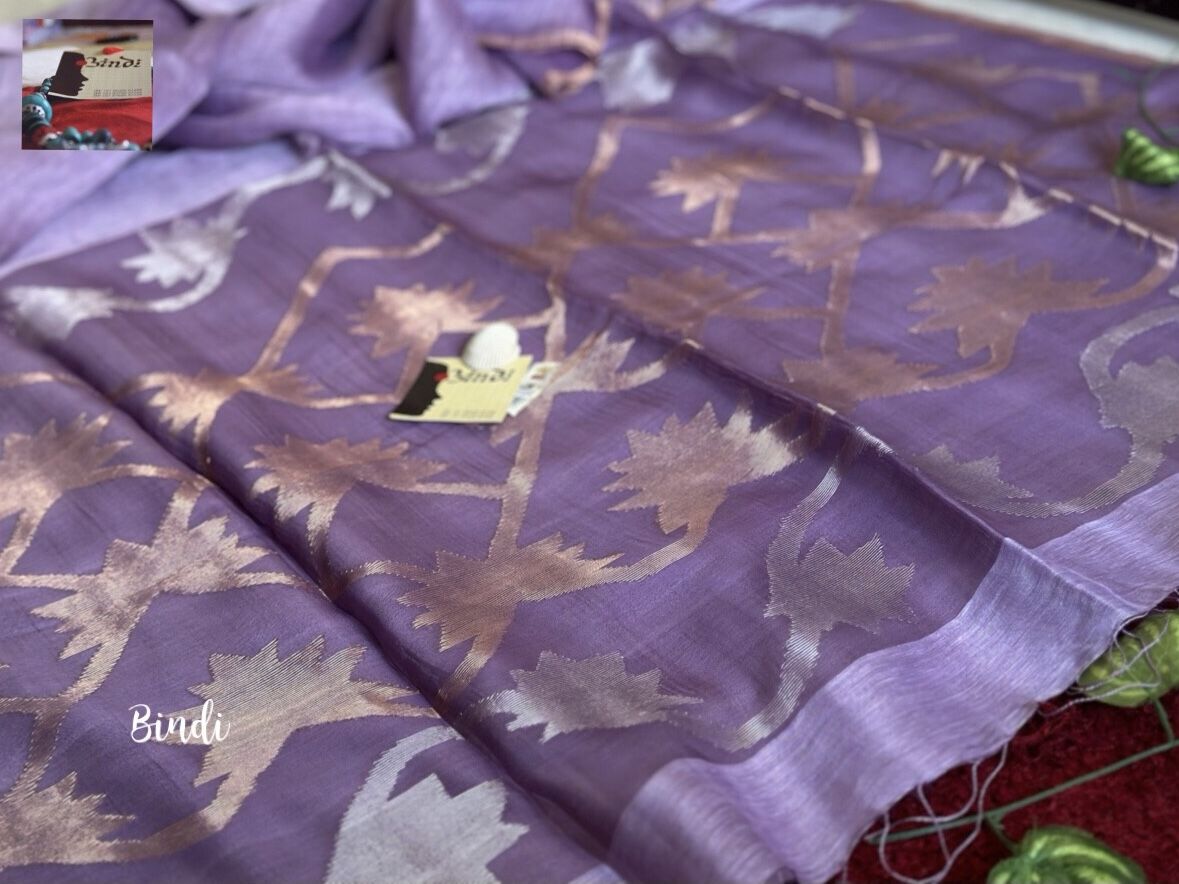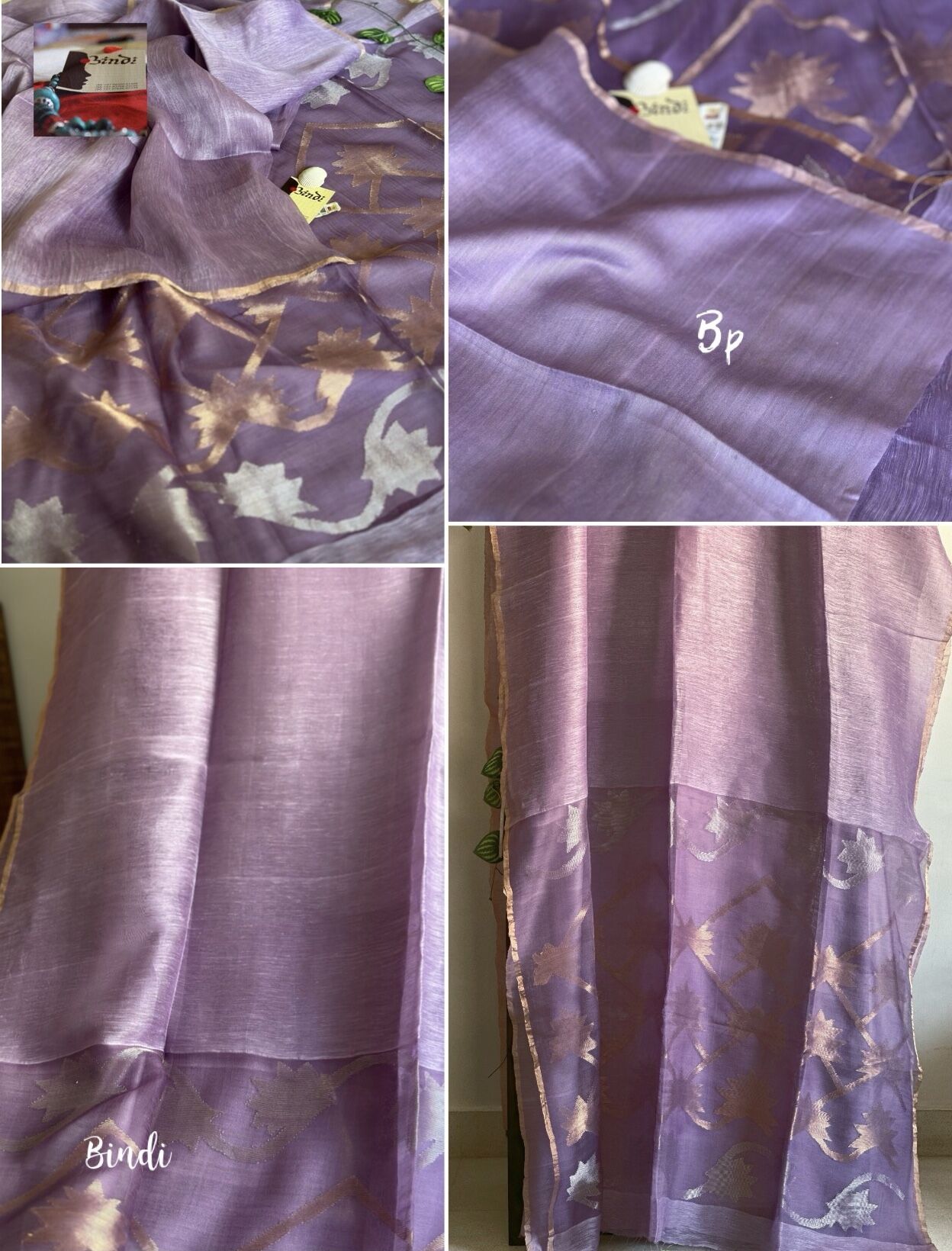 Violette Royale ~ Handwoven pure linen Silk Jamdani Saree
