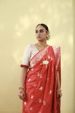 The revival of the Begumpur weaving cluster in the recent past is one of the success stories of Indian handloom space. The result is the Begumpur sari’s new look- better in quality, colour fast, with finer yarn, one that had the all the design tradition of the classical Begumpur sarees, but with a completely wearable, contemporary feel.