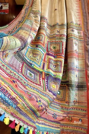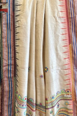 Lambani hand embroidery on premium quality Vidarbha Tussar with running blouse piece
