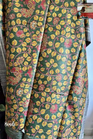 Printed pure Gicha tussar lite weight soft and easy to drape saree with contrast blouse piece , saree length 6.3 mts