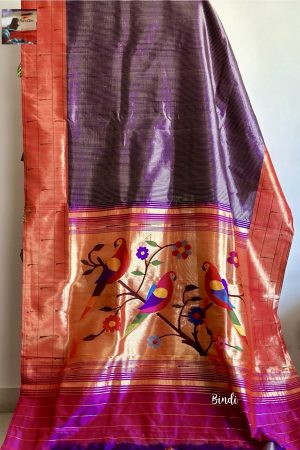 Paithani sarees are known for their intricate handwoven silk and Tissue Zari work and are a traditional specialty of the Paithan region in Maharashtra. Today Yeola town in Nashik, Maharashtra is the largest manufacturer of Paithani. The key element of a Paithani is its completely hand-woven border and pallu. Woven between the weft and warp threads, it creates almost mirror image of face design at the reverse side of the Saree. A key tell-tale sign of an authentic Paithani is that it looks exactly the same on both sides.
